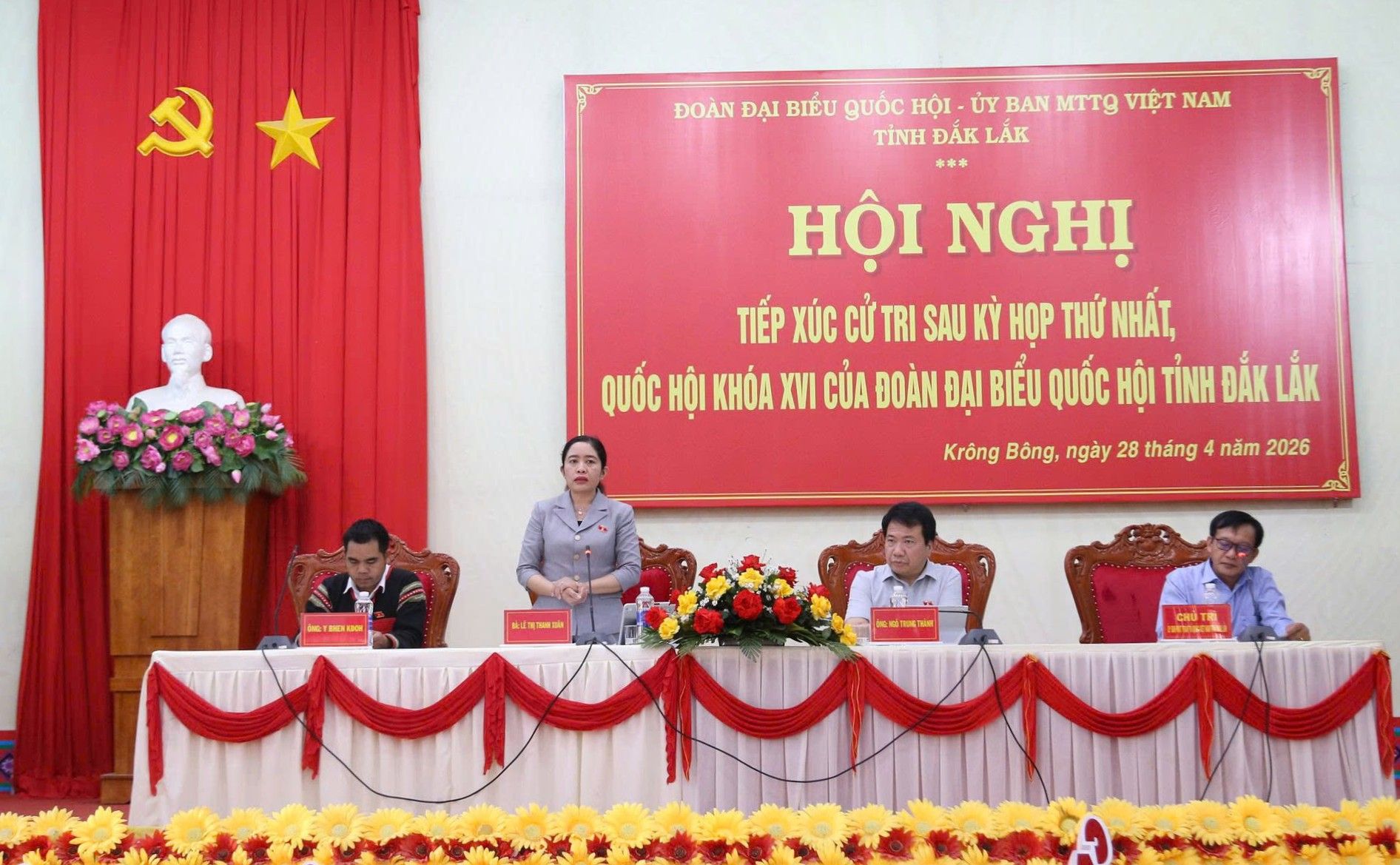 Sáng 28/4, tại đơn vị bầu cử số 3, các đại biểu Quốc hội tỉnh Đắk Lắk gồm các đồng chí: Ngô Trung Thành - Phó Chủ nhiệm Ủy ban Pháp luật và Tư pháp của Quốc hội; Lê Thị Thanh Xuân - Giám đốc Sở Giáo dục và Đào tạo; Y Bhen Kđoh – đại biểu Quốc hội khóa XVI đã tiến hành tiếp xúc với cử tri các xã: Krông Bông, Cư Pui và Hòa Sơn sau Kỳ họp thứ nhất, Quốc hội khóa XVI.