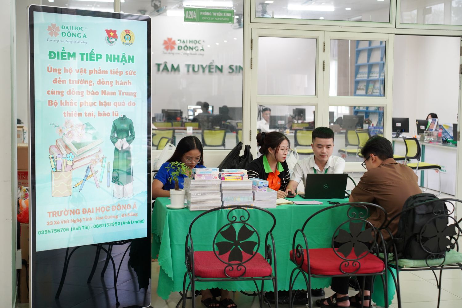 Ngay từ đầu giờ sáng mỗi ngày, điểm tiếp nhận tại Đại học Đông Á đã tấp nập người đến ủng hộ. Từng thùng vở, từng bộ dụng cụ học tập, ba lô,... được chuyển đến liên tục, chất đầy các bàn phân loại.