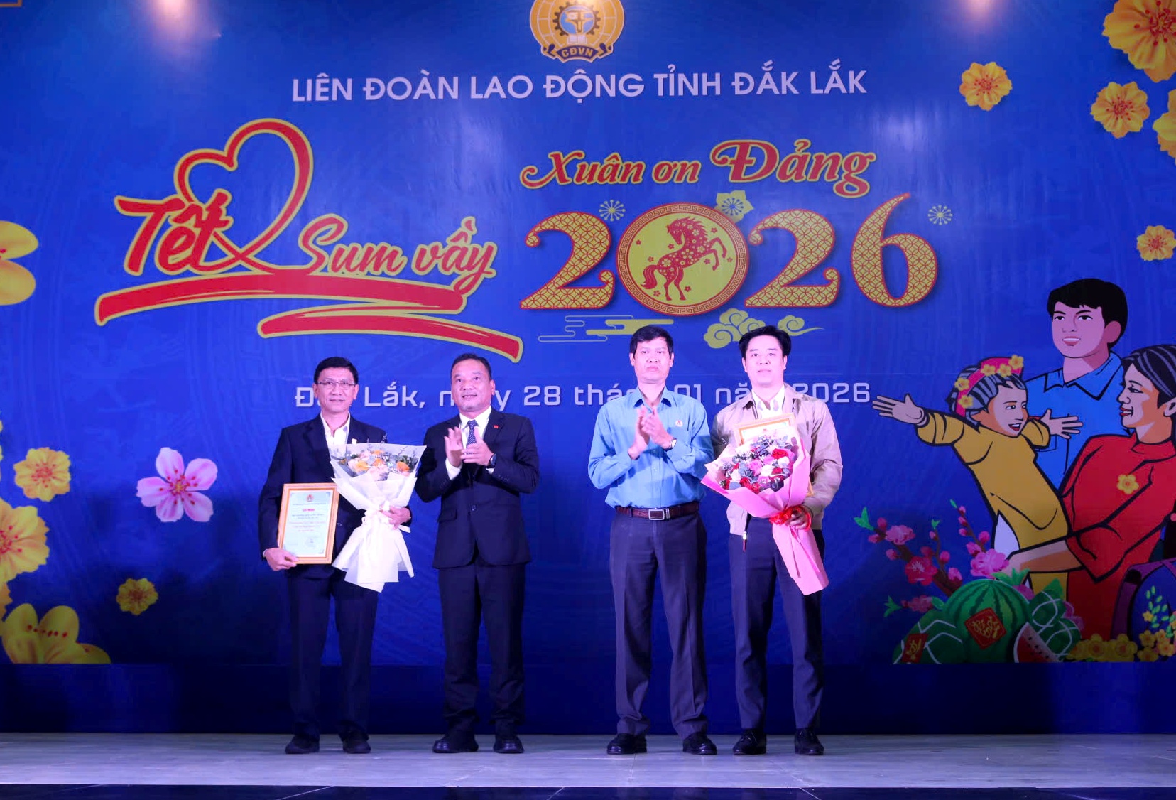 Phát biểu tại Chương trình “Tết Sum vầy - Xuân ơn Đảng” năm 2026, đồng chí Y Giang Gry Niê Knơng - Phó Bí thư Tỉnh ủy, Chủ tịch Ủy ban MTTQ Việt Nam tỉnh ghi nhận và biểu dương những nỗ lực của các cấp công đoàn trong công tác chăm lo cho đoàn viên, người lao động thời gian qua, đặc biệt là trong bối cảnh đời sống của một bộ phận người lao động còn gặp nhiều khó khăn sau thiên tai, dịch bệnh. Đồng chí Y Giang Gry Niê Knơng đề nghị thời gian tới, tổ chức công đoàn tiếp tục bám sát cơ sở, nắm chắc tình hình việc làm, đời sống của người lao động; chủ động phối hợp với các cấp, các ngành và cộng đồng doanh nghiệp để làm tốt hơn nữa công tác chăm lo, nhất là đối với đoàn viên có hoàn cảnh khó khăn.