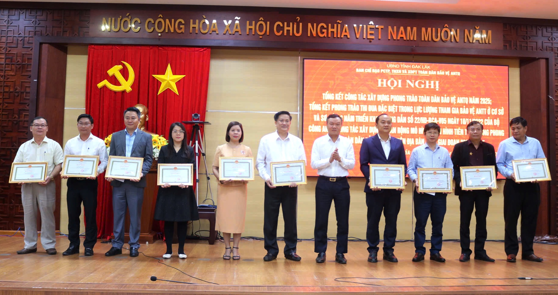 Tại hội nghị, thay mặt UBND tỉnh, Ban Chỉ đạo tỉnh, Phó Chủ tịch UBND tỉnh Đào Mỹ đã phát động Phong trào thi đua “Toàn dân bảo vệ an ninh Tổ quốc” tỉnh Đắk Lắk năm 2026. Dịp này, nhiều tập thể và cá nhân tiêu biểu trong phong trào Toàn dân bảo vệ ANTQ năm 2025 đã được Bộ Công an, UBND tỉnh và Công an tỉnh tuyên dương, khen thưởng.