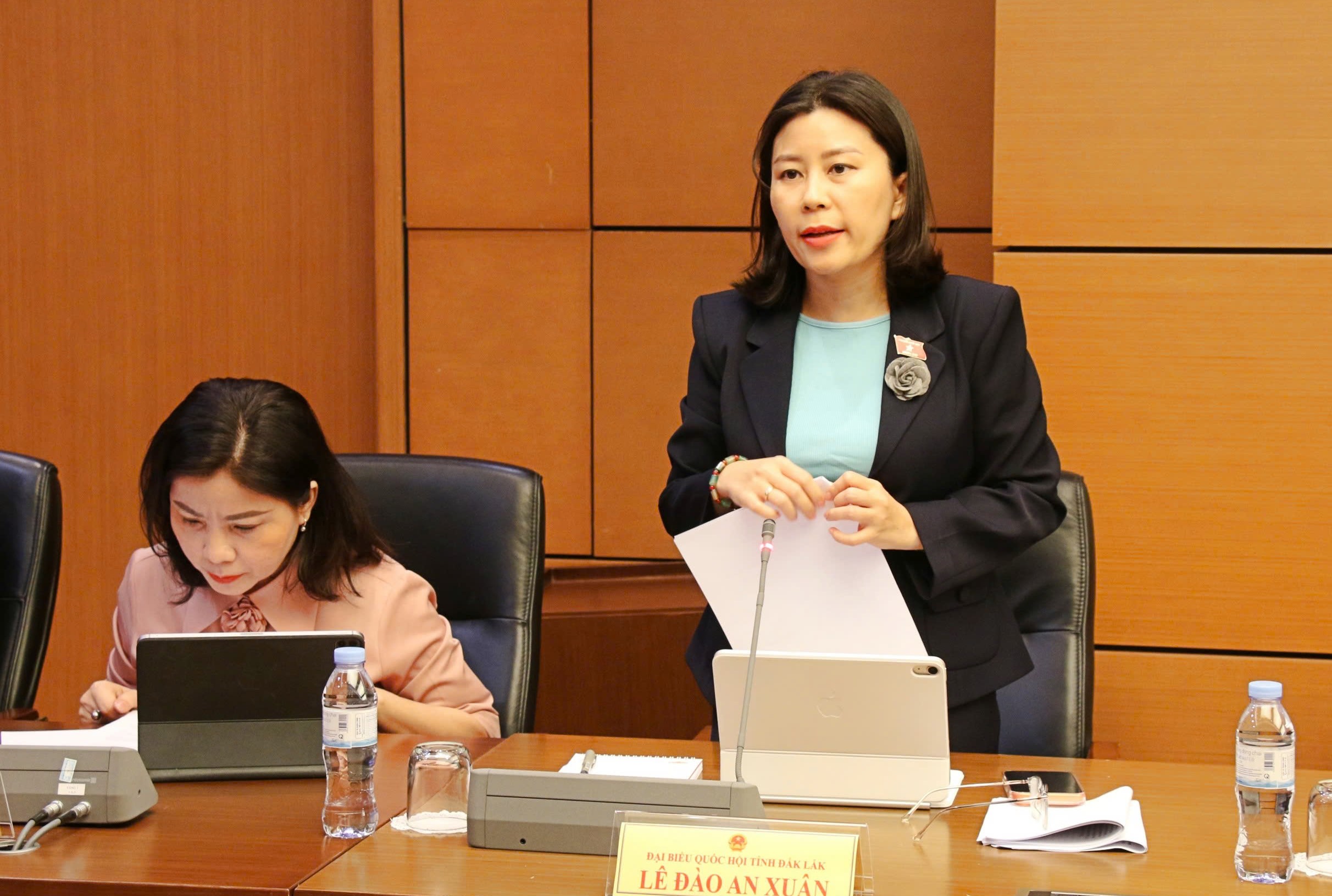 Đại biểu Lê Đào An Xuân - Phó Trưởng đoàn chuyên trách Đoàn đại biểu Quốc hội tỉnh Đắk Lắk phát biểu thảo luận về các dự án luật (Ảnh: Đoàn đại biểu Quốc hội tỉnh cung cấp).