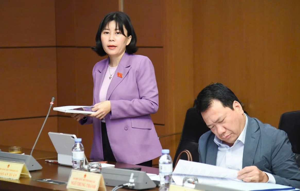 Phó Trưởng đoàn chuyên trách phụ trách Đoàn đại biểu Quốc hội tỉnh Nguyễn Thị Thu Nguyệt phát biểu thảo luận tại tổ (Ảnh: Đoàn đại biểu Quốc hội tỉnh cung cấp).