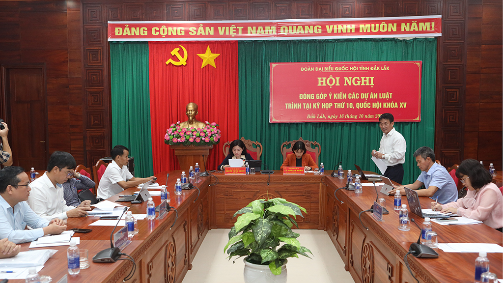 Chiều 16/10, Đoàn Đại biểu Quốc hội (ĐBQH) tỉnh Đắk Lắk tổ chức Hội nghị lấy ý kiến góp ý đối với các dự án luật thuộc lĩnh vực tài nguyên, môi trường, quy hoạch, gồm: Luật Xây dựng (sửa đổi); Luật sửa đổi, bổ sung một số điều của Luật Địa chất và khoáng sản; Luật sửa đổi, bổ sung một số điều của các Luật trong lĩnh vực nông nghiệp và môi trường; Luật Quy hoạch (sửa đổi); Luật sửa đổi, bổ sung một số điều của Luật Quy hoạch đô thị và nông thôn.