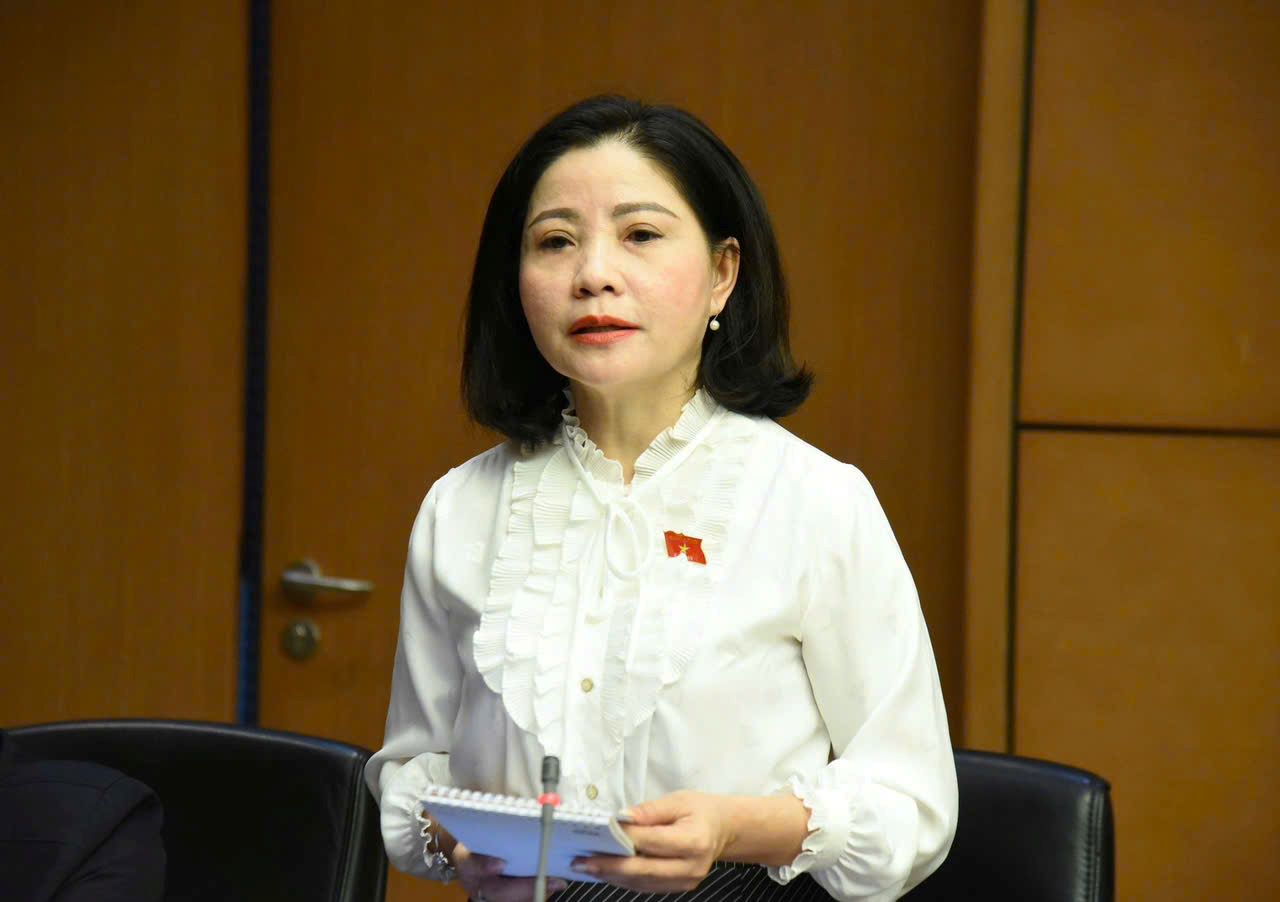 Đại biểu Nguyễn Thị Thu Nguyệt - Phó Trưởng đoàn chuyên trách phụ trách Đoàn đại biểu Quốc hội tỉnh thảo luận tại phiên làm việc (Ảnh: Đoàn đại biểu Quốc hội tỉnh cung cấp).