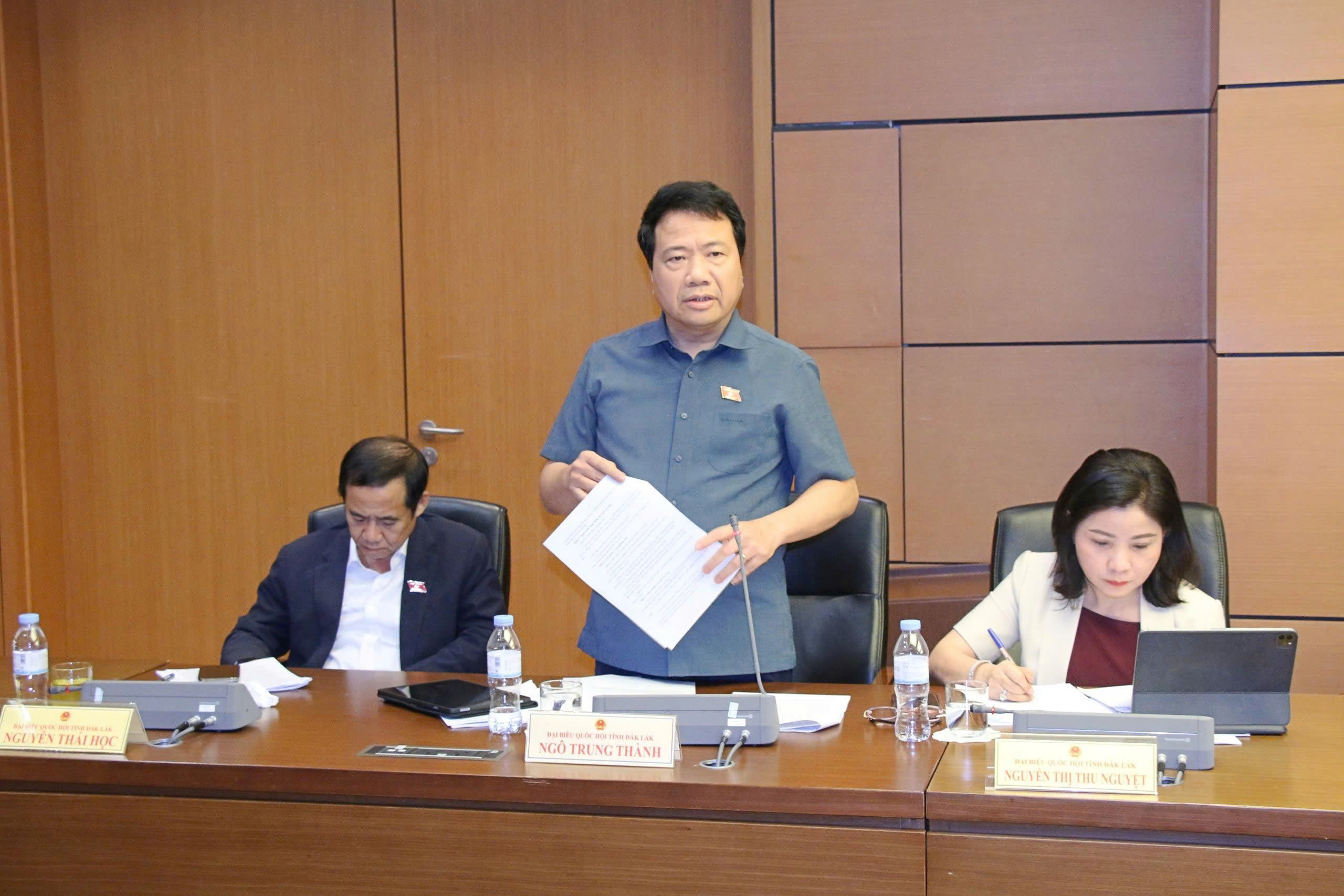 Đại biểu Ngô Trung Thành, Phó Chủ nhiệm Ủy ban Pháp luật và Tư pháp của Quốc hội thảo luận tại phiên làm việc. (Ảnh: Đoàn đại biểu Quốc hội tỉnh cung cấp).