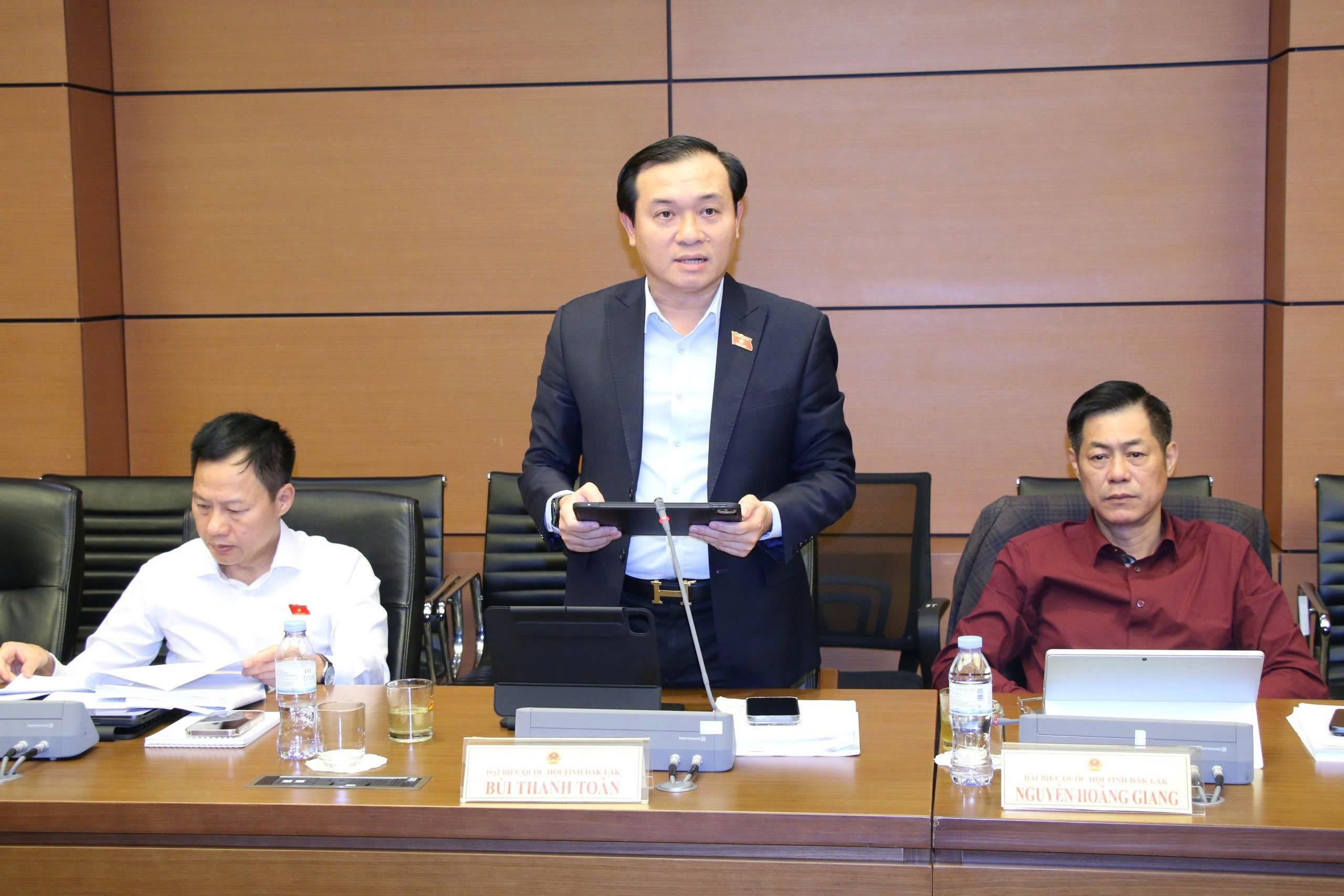 Đại biểu Bùi Thanh Toàn - Ủy viên Ban Thường vụ Tỉnh ủy, Giám đốc Sở Khoa học và Công nghệ Đắk Lắk phát biểu tại phiên thảo luận tổ. (Ảnh: Đoàn đại biểu Quốc hội tỉnh cung cấp).