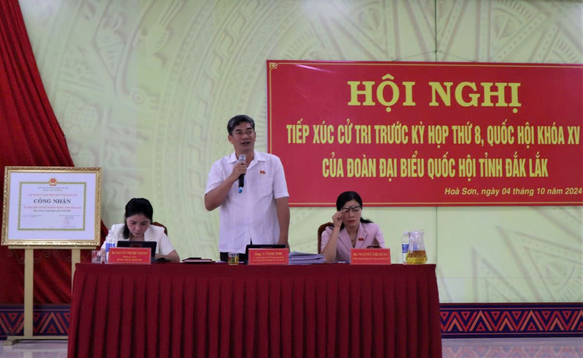 Chiều 4/10, Tổ đại biểu số 1, Đoàn đại biểu Quốc hội tỉnh Đắk Lắk do đồng chí Y Vinh Tơr - Ủy viên dự khuyết Ban Chấp hành Trung ương Đảng, Thứ trưởng, Phó Chủ nhiệm Ủy ban Dân tộc làm Tổ trưởng đã có buổi tiếp xúc cử tri trước kỳ họp thứ 8, Quốc hội khóa XV tại xã Hòa Sơn (huyện Krông Bông).