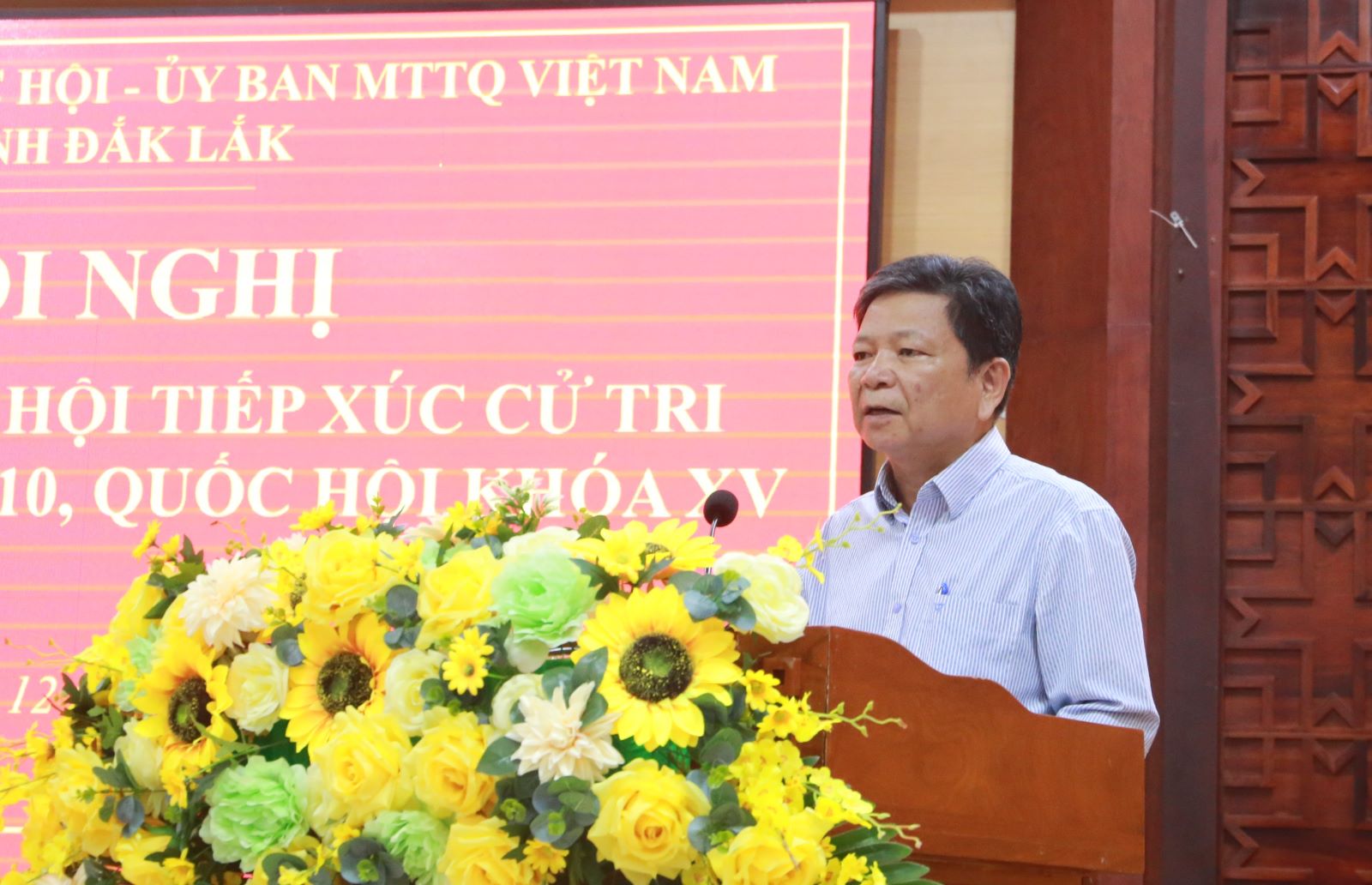 Chiều 12/12, tại điểm cầu chính số 1, Đoàn đại biểu Quốc hội tỉnh Đắk Lắk phối hợp với Ủy ban Mặt trận Tổ quốc Việt Nam tỉnh Đắk Lắk tổ chức Hội nghị tiếp xúc cử tri sau Kỳ họp thứ 10, Quốc hội khóa XV theo hình thức trực tiếp kết hợp trực tuyến với các cử tri của 68 xã, phường trên địa bàn tỉnh.