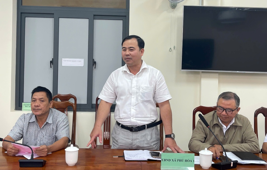 Lãnh đạo xã Phú Hòa 1 thông tin thêm về nội dung công dân kiến nghị tại buổi tiếp.