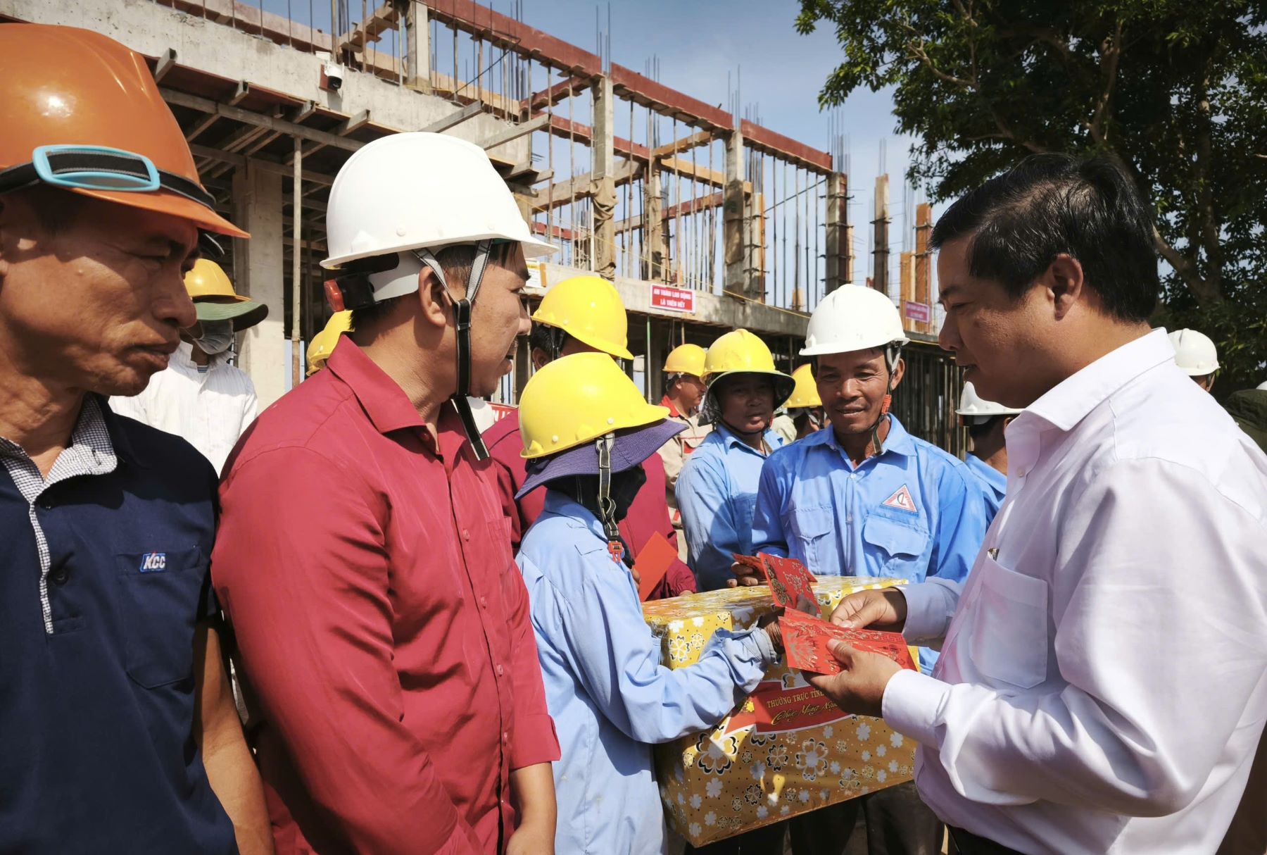Bí thư Tỉnh ủy Lương Nguyễn Minh Triết trao quà và chúc Tết cán bộ, kỹ sư, công nhân đang trực tiếp thi công tại các công trình.