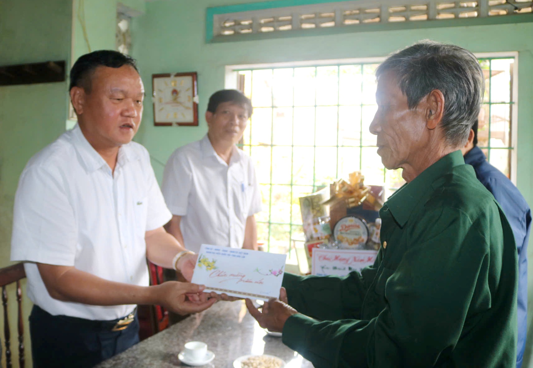Đồng chí Đào Mỹ - Phó Chủ tịch UBND tỉnh thăm, chúc Tết và tặng quà thương binh Lê Văn Phúc.