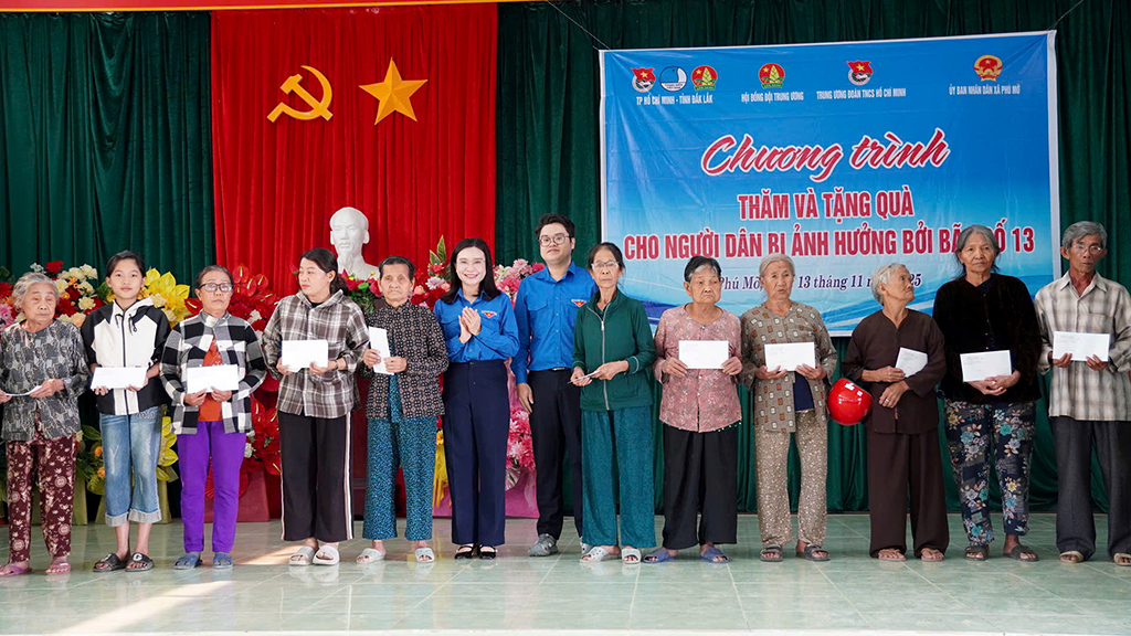 Đoàn công tác đã trao các phần hỗ trợ trị giá gần 3 tỷ đồng, bao gồm tiền mặt, dụng cụ học tập dành cho thiếu nhi và vật phẩm thiết yếu, nhằm kịp thời chia sẻ khó khăn, tiếp thêm động lực cho cán bộ Đoàn, thiếu nhi và các gia đình bị thiệt hại bởi bão lũ gây ra. Trong đó, Trung ương Đoàn, Hội đồng Đội trung ương hỗ trợ: 400 triệu đồng hỗ trợ thiếu nhi và người dân bị ảnh hưởng bởi cơn bão số 13 gây ra từ Công ty TNHH Amway Việt Nam, Công ty Cổ phần Tập đoàn Bảo Tín; 3.000 phần quà dụng cụ học tập dành cho thiếu nhi, trị giá 300 triệu đồng từ Công ty cổ phần Tập đoàn Thiên Long. Thành Đoàn TP. Hồ Chí Minh phối hợp Tỉnh Đoàn Đắk Lắk hỗ trợ 600 suất quà, mỗi suất trị giá 2 triệu đồng dành cho hộ gia đình thuộc diện hộ nghèo, hộ gia đình có hoàn cảnh khó khăn bị thiệt hại do bão cho 3 xã.