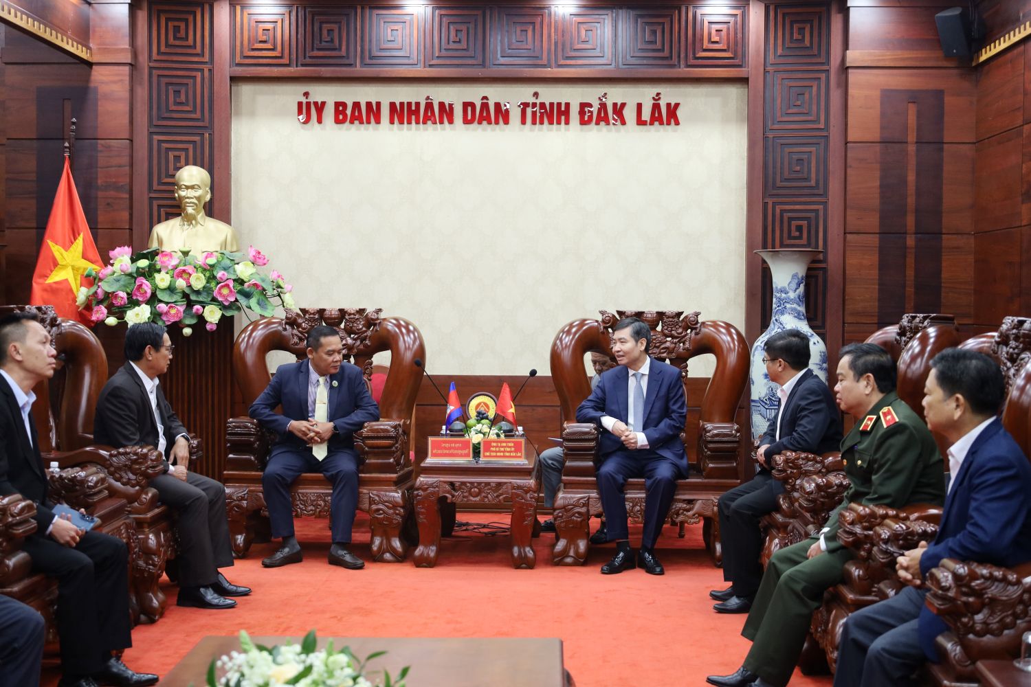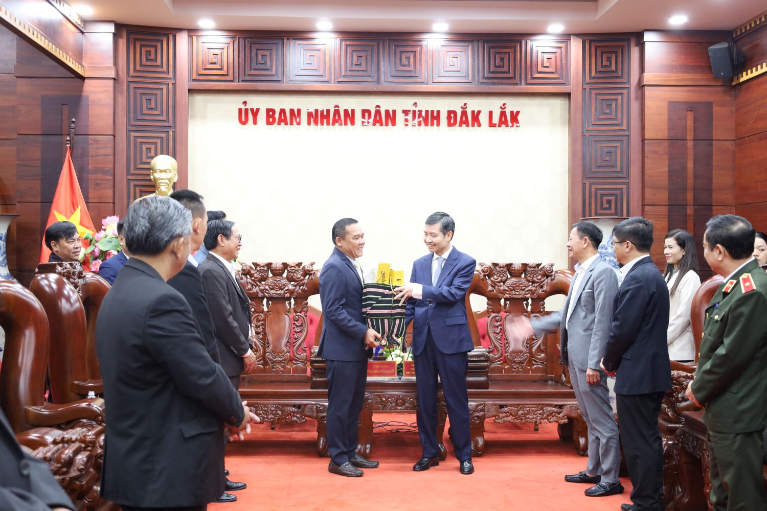 Chủ tịch UBND tỉnh Đắk Lắk nhiệt liệt chào mừng đoàn công tác tỉnh Mondulkiri đến thăm và làm việc tại tỉnh trong những ngày đầu năm mới 2026; đồng thời, thông tin cho lãnh đạo tỉnh bạn về tình hình kinh tế - xã hội của tỉnh Đắk Lắk nói riêng và Việt Nam nói chung. Lãnh đạo tỉnh nhấn mạnh, mối quan hệ giữa hai tỉnh thời gian qua ngày càng phát triển, gắn bó và thiết thực hơn. Đặc biệt, từ ngày 01/7/2025, tỉnh Đắk Lắk đã chính thức sáp nhập với tỉnh Phú Yên, hình thành tỉnh Đắk Lắk mới với quy mô diện tích hơn 18.000 km² và 102 đơn vị hành chính cấp xã, với đường bờ biển dài 189 km và có gần 72 km đường biên giới giáp với tỉnh Mondulkiri.