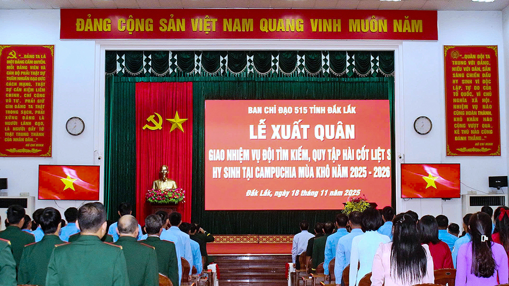 Ngày 18/11, Ban Chỉ đạo 515 tỉnh tổ chức Lễ xuất quân giao nhiệm vụ Đội K51 lên đường tìm kiếm, quy tập hài cốt liệt sĩ và chuyên gia Việt Nam hy sinh tại Campuchia mùa khô năm 2025 - 2026.