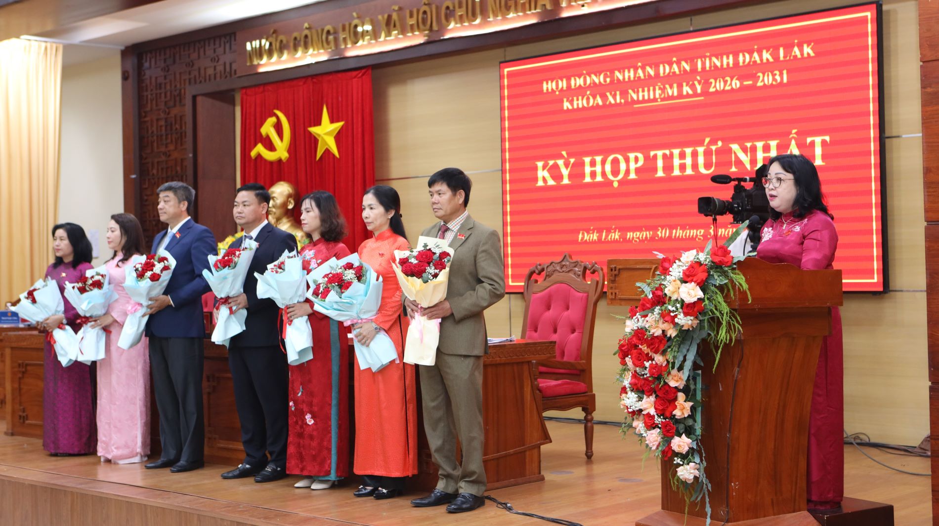 Các đồng chí: Từ Thái Giang - Ủy viên Ban Thường vụ Tỉnh ủy, Phó Chủ tịch Thường trực HĐND tỉnh khóa X, đại biểu HĐND tỉnh khóa XI nhiệm kỳ 2026 - 2031; Đỗ Thái Phong - Tỉnh ủy viên, Phó Chủ tịch HĐND tỉnh khóa X, đại biểu HĐND tỉnh khóa XI, nhiệm kỳ 2026 – 2031; Phúc Bình Niê Kdăm - Tỉnh ủy viên, Phó Chủ tịch HĐND tỉnh khóa X, đại biểu HĐND tỉnh khóa XI, nhiệm kỳ 2026 – 2031 đã được tín nhiệm bầu giữ chức Phó Chủ tịch HĐND tỉnh khóa XI, nhiệm kỳ 2026 - 2031.