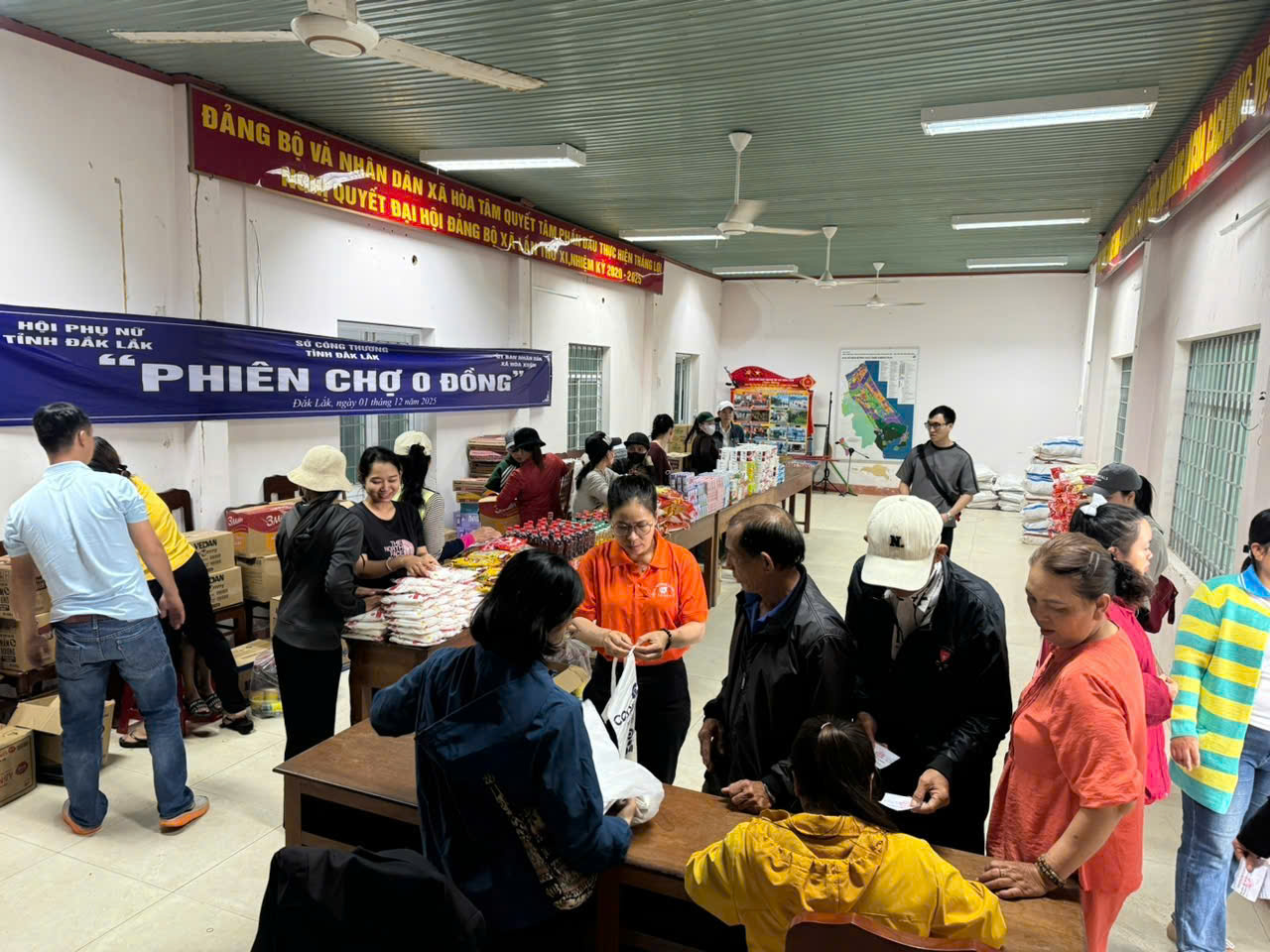 Sáng 1/12, trước tình hình thiệt hại do mưa lũ gây ra trên địa bàn tỉnh, Sở Công Thương và Hội Liên hiệp Phụ nữ (LHPN) tỉnh Đắk Lắk đã phối hợp tổ chức “Phiên chợ 0 đồng” tại xã Hòa Xuân.