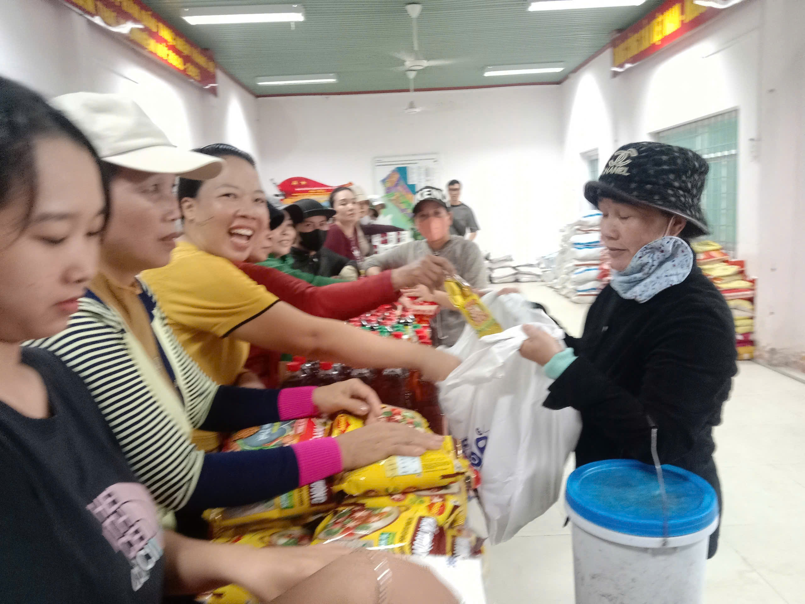 Phiên chợ tại xã Hòa Xuân hỗ trợ 500 suất hàng thiết yếu cho các đối tượng.