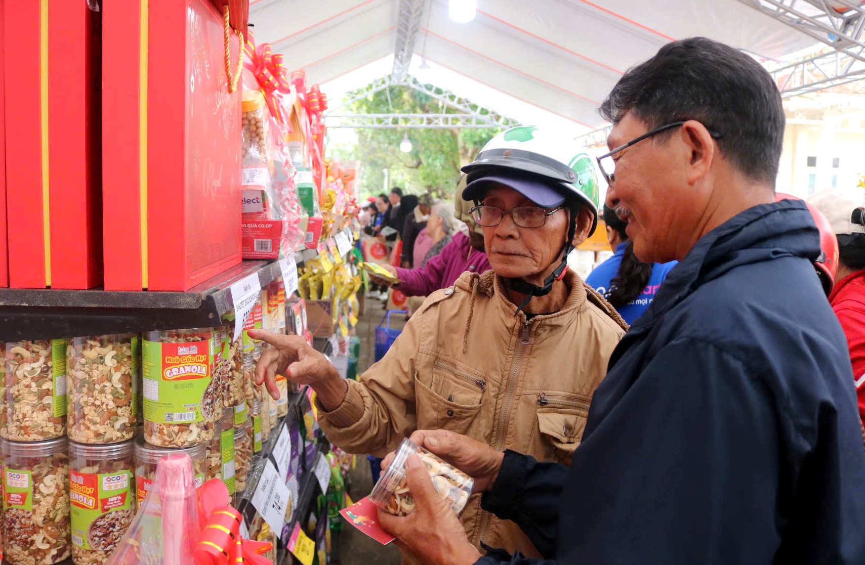 Người dân hào hứng lựa chọn, mua sắm tại các gian hàng trong Chợ Tết Nhân ái.
