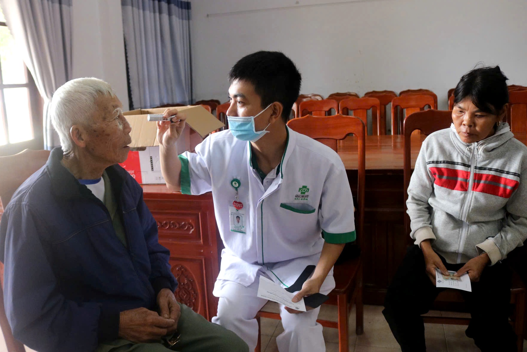 Đội ngũ y, bác sĩ khám, tư vấn sức khỏe mắt miễn phí cho người dân tại chương trình.