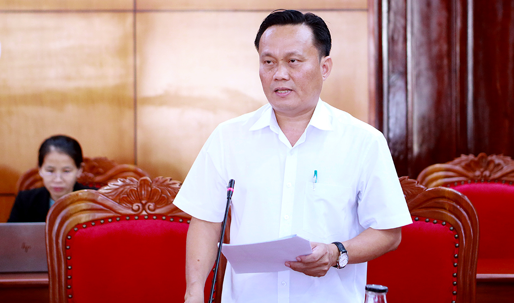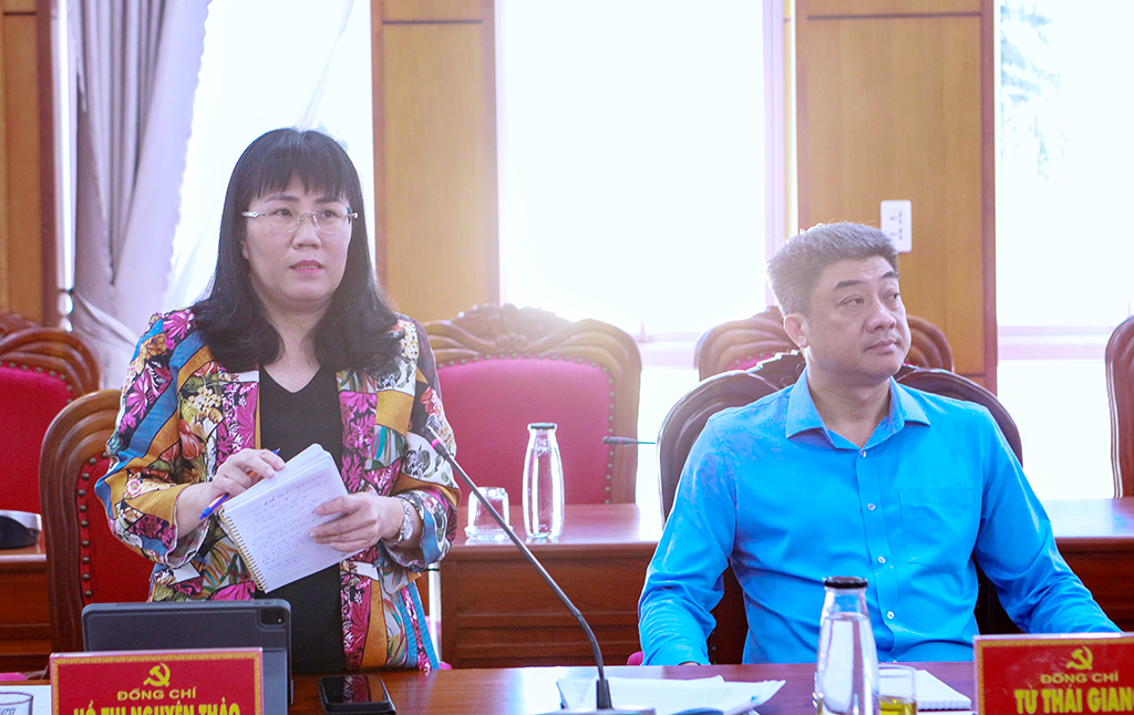Đồng chí Hồ Thị Nguyên Thảo - Ủy viên Ban Thường vụ Tỉnh ủy, Phó Chủ tịch Thường trực UBND tỉnh phát biểu tại Hội nghị.