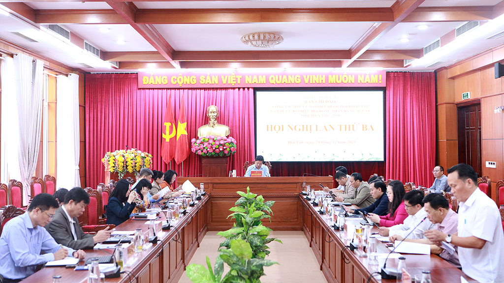 Sáng 29/12, Ban Chỉ đạo công tác bầu cử đại biểu Quốc hội (ĐBQH) khóa XVI và đại biểu Hội đồng nhân dân (HĐND) các cấp nhiệm kỳ 2026 - 2031 của tỉnh Đắk Lắk (Ban Chỉ đạo công tác bầu cử tỉnh) tổ chức hội nghị lần thứ ba.