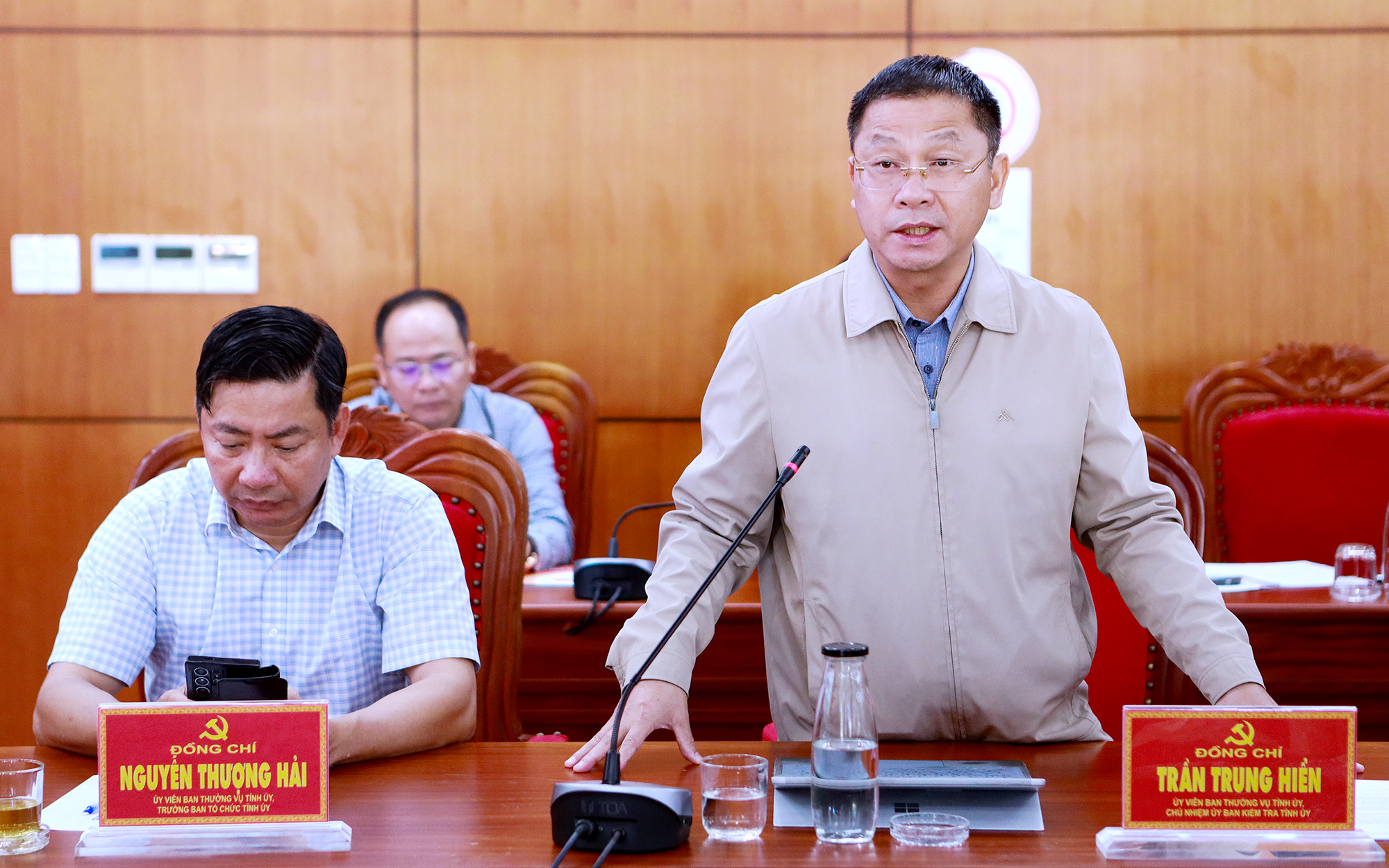 Đồng chí Trần Trung Hiển - Ủy viên Ban Thường vụ Tỉnh ủy, Chủ nhiệm Ủy ban Kiểm tra Tỉnh ủy phát biểu tại Hội nghị.