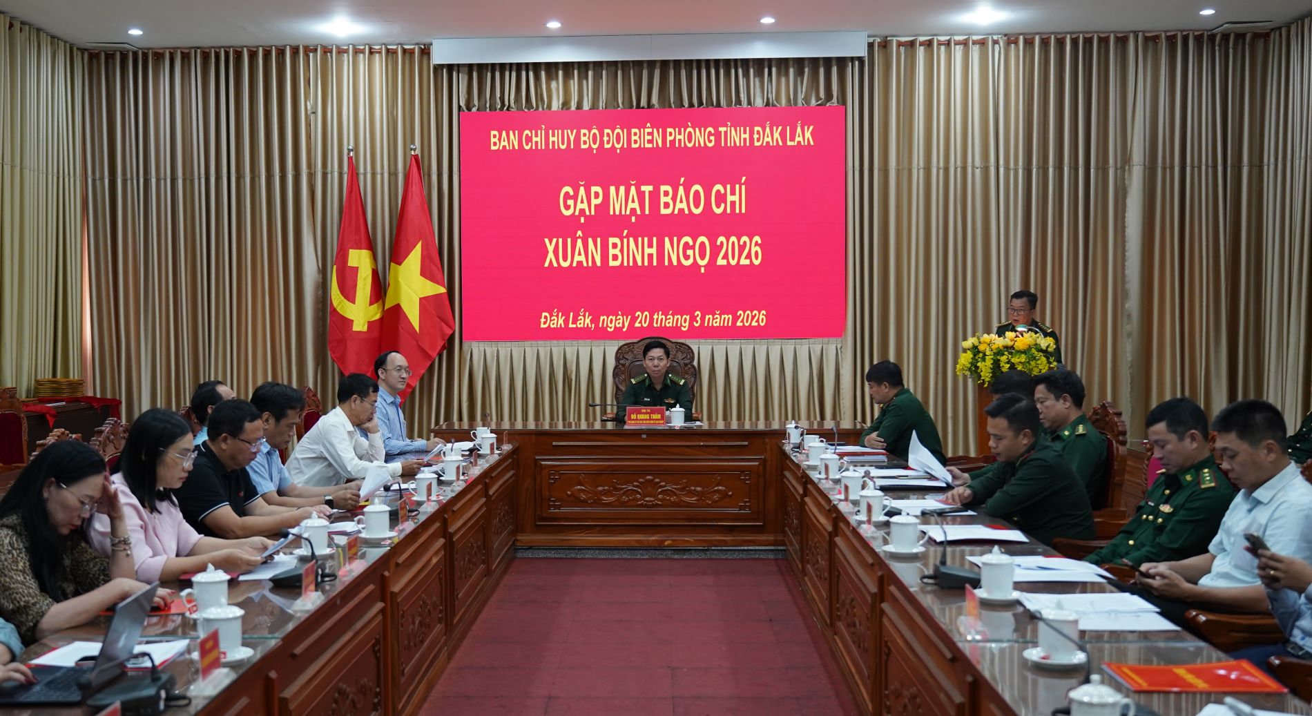 Chiều 20/3, Ban Chỉ huy Bộ đội Biên phòng tỉnh Đắk Lắk tổ chức gặp mặt các cơ quan báo chí nhân dịp Xuân Bính Ngọ 2026. Đại tá Đỗ Quang Thấm - Phó Chính ủy Bộ Chỉ huy Quân sự tỉnh, Chính ủy Ban Chỉ huy Bộ đội Biên phòng tỉnh chủ trì buổi gặp mặt.