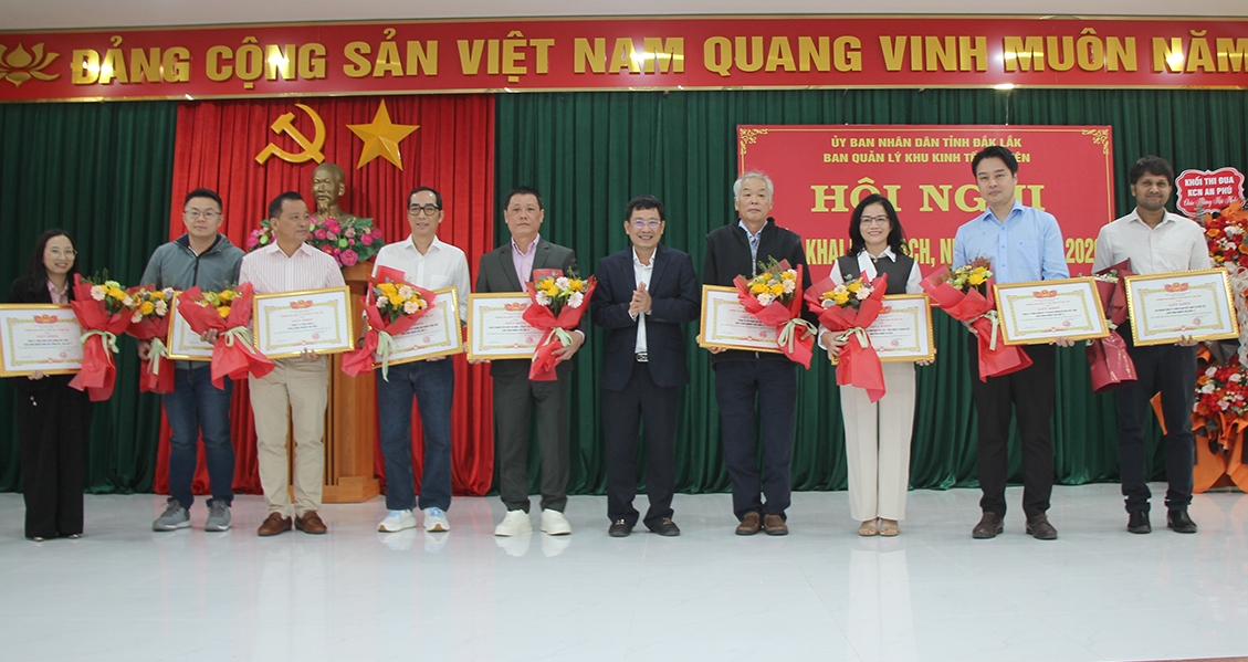 Ban Quản lý Khu kinh tế Phú Yên tặng giấy khen cho các tập thể, cá nhân có thành tích xuất sắc trong năm 2025; tặng giấy khen cho 9 doanh nghiệp có thành tích xuất sắc trong sản xuất, kinh doanh.