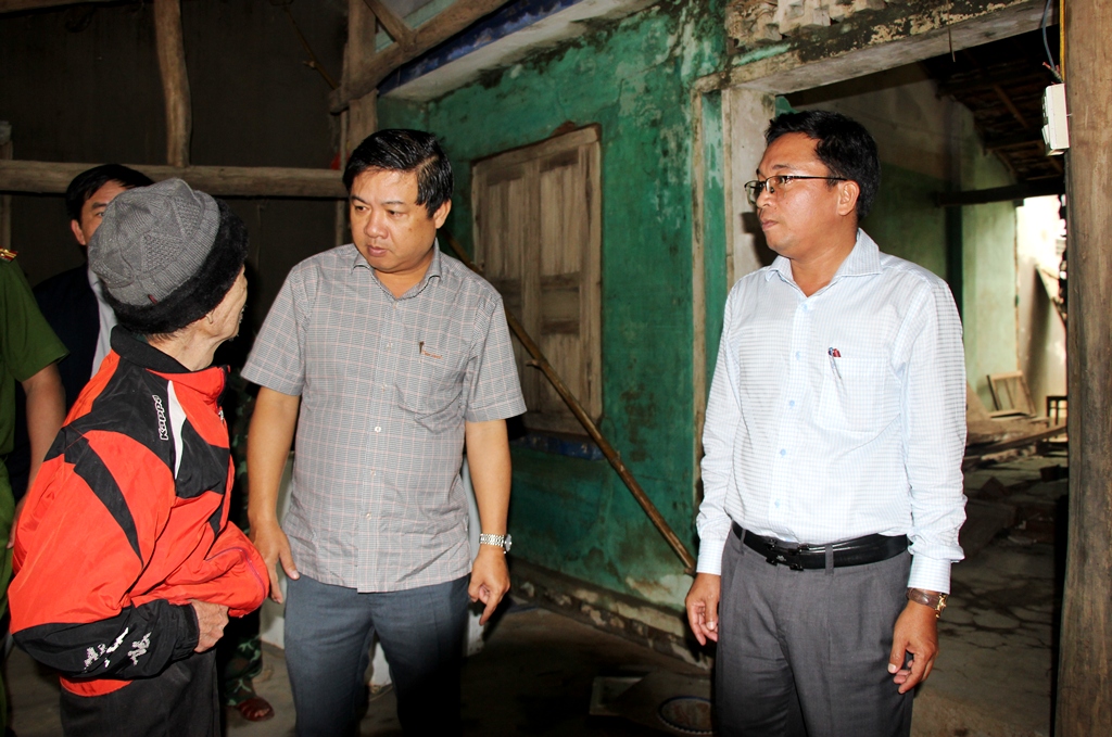 Dịp này, Bí thư Tỉnh ủy Lương Nguyễn Minh Triết đã đến thăm gia đình ông Nguyễn Xuân Sang, sinh năm 1936, đối tượng chính sách có nhà sập hoàn toàn trên địa bàn xã Sơn Hòa; kiểm tra tình trạng sạt lở khu vực bờ sông Ba.