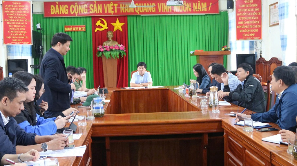 Bí thư Tỉnh ủy Lương Nguyễn Minh Triết làm việc tại xã Tuy An Tây về công tác khắc phục hậu quả thiên tai.