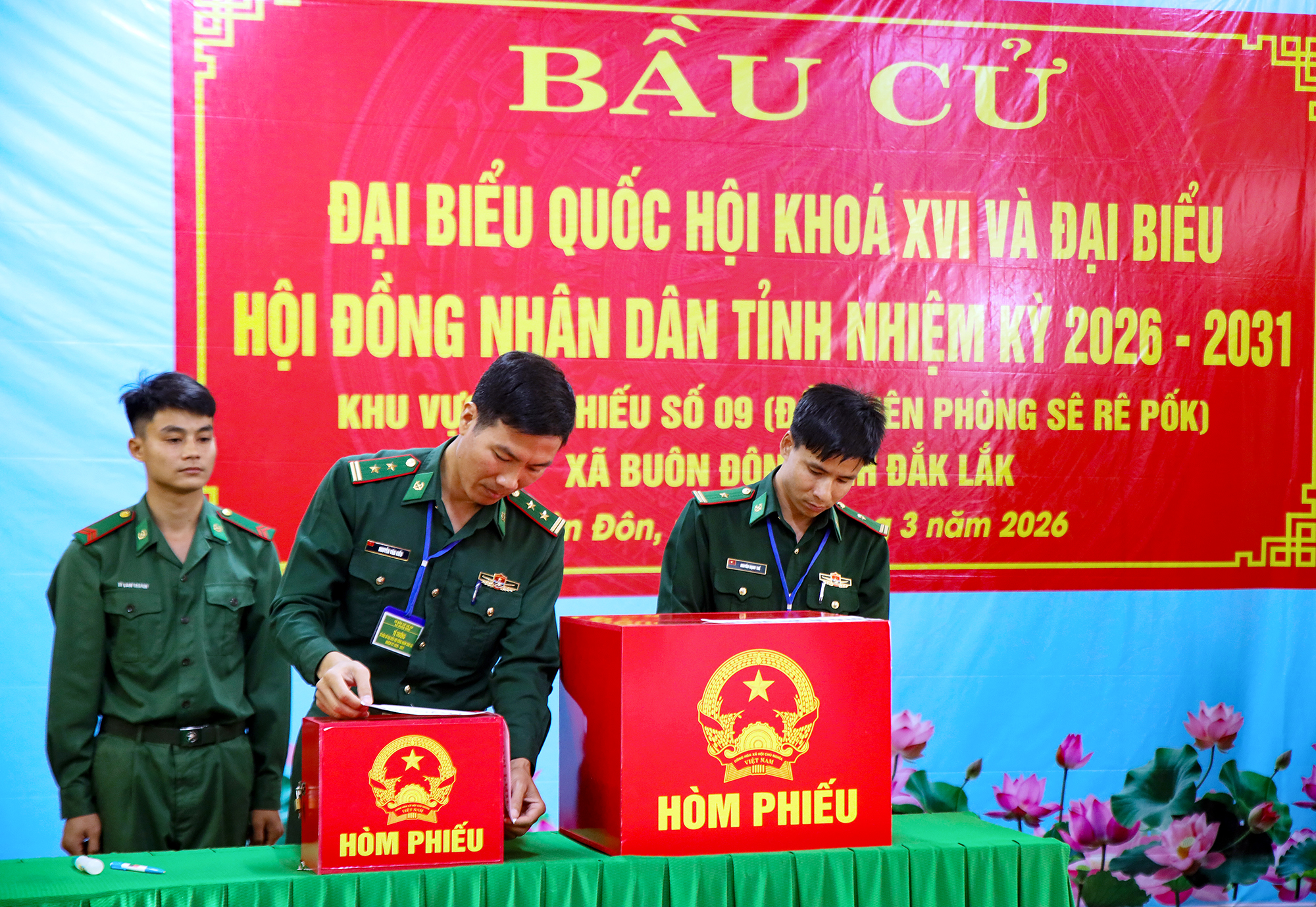 Đồn Biên phòng Sê Rê Pốk (Khu vực bỏ phiếu số 9, xã Buôn Đôn) thuộc Đơn vị bầu cử số 5 (Bầu cử Đại biểu Quốc hội khóa VI) và thuộc Đơn vị bầu cử số 26 (Bầu cử HĐND tỉnh Đắk Lắk khóa XI, nhiệm kỳ 2026 – 2031. Thực hiện Công văn số 147/HĐBCQG ngày 14/02/2026 của Hội đồng bầu cử quốc gia về việc cho phép tổ chức bỏ phiếu bầu cử sớm; công văn số 0125/CV-UBBC ngày 24/02/2026 của Ủy ban bầu cử tỉnh Đắk Lắk về việc tổ chức bầu cử ở các khu vực bỏ phiếu sớm; công tác bầu cử sớm tại đây triển khai thực hiện đảm bảo, đúng quy định; dưới sự hướng dẫn của Tổ bầu cử, các cử tri đã thực hiện việc bỏ phiếu đầy đủ, nhanh chóng. Đặc biệt, đối với cán bộ, chiến sĩ thực hiện nhiệm vụ trực sẵn sàng chiến đấu tại các tổ, chốt trên biên giới, Tổ Bầu cử đã thực hiện việc mang thùng phiếu phụ đến tận nơi đảm bảo quyền và nghĩa vụ công dân mà không ảnh hưởng đến nhiệm vụ chính trị được giao.