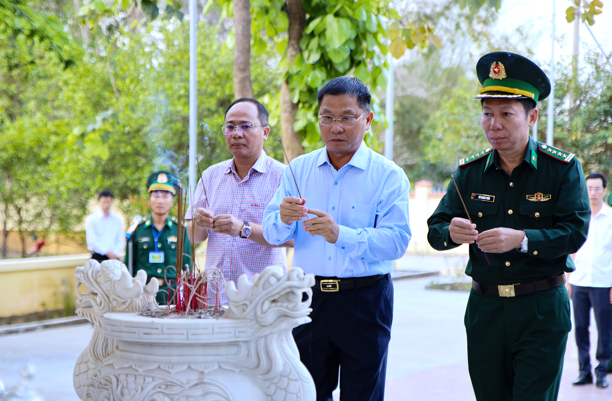 Đồng chí Lương Nguyễn Minh Triết - Ủy viên Trung ương Đảng, Bí thư Tỉnh ủy, Trưởng Ban chỉ đạo công tác bầu cử tỉnh Đắk Lắk và đoàn công tác thắp hương tại Nhà bia ghi danh các liệt sĩ tại Đồn Biên phòng Sê Rê Pốk trước khi tổ chức khai mạc bầu cử.