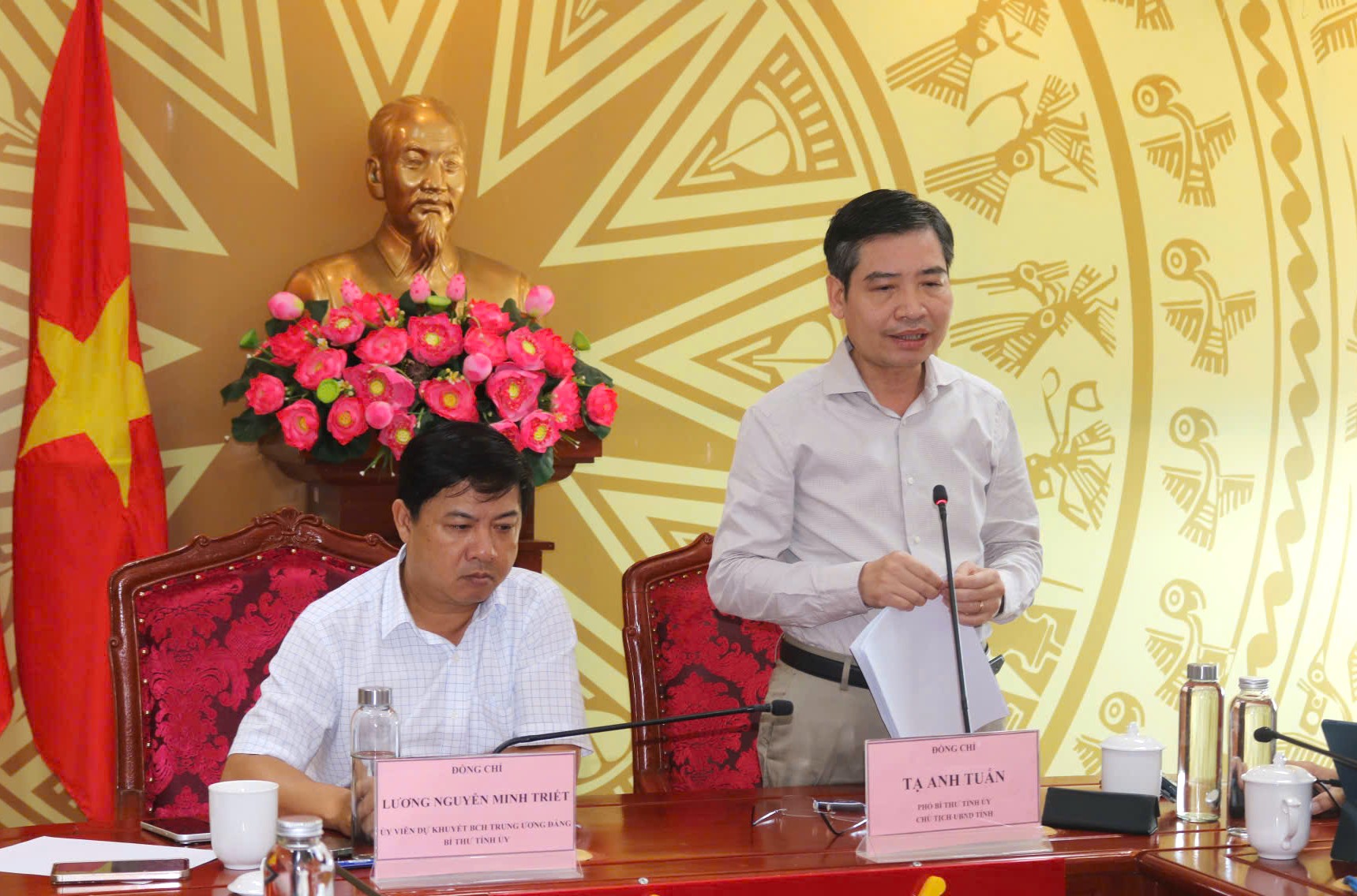 Phó Bí thư Tỉnh ủy, Chủ tịch UBND tỉnh Tạ Anh Tuấn thông tin tại cuộc họp.