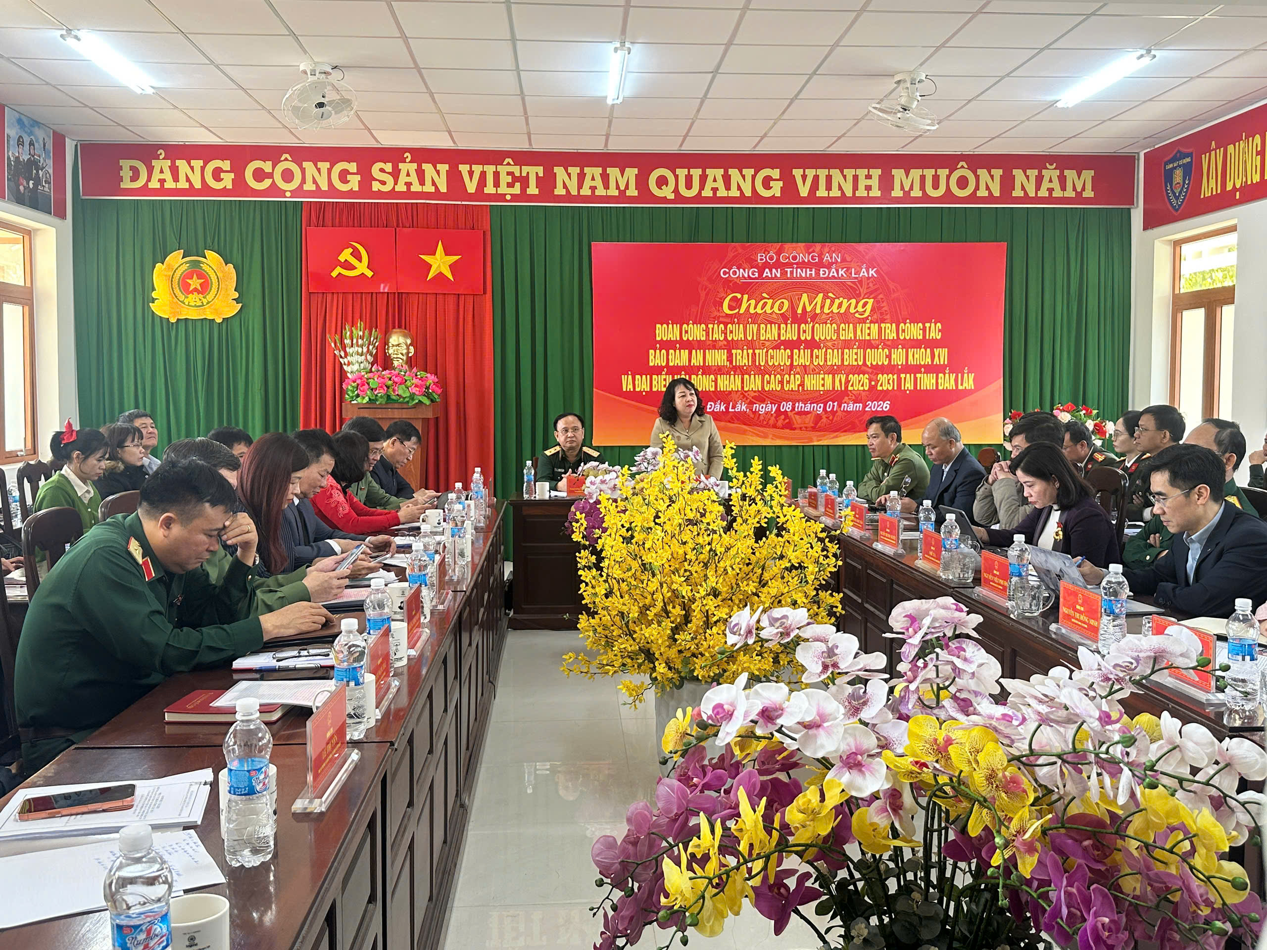 Ngày 8/1, tiếp tục chương trình công tác tại tỉnh Đắk Lắk, Đoàn kiểm tra, giám sát của Tiểu ban bảo đảm an ninh, trật tự và an toàn xã hội – Hội đồng Bầu cử quốc gia đã làm việc với Phòng Cảnh sát cơ động, Công an tỉnh Đắk Lắk và Tiểu đoàn 303, Trung đoàn 584, Bộ Chỉ huy Quân sự tỉnh về công tác sẵn sàng chiến đấu, bảo đảm an ninh, trật tự phục vụ bầu cử đại biểu Quốc hội khóa XVI và đại biểu HĐND các cấp nhiệm kỳ 2026–2031.