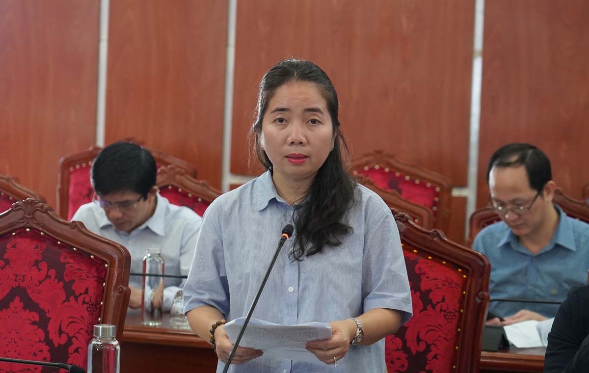 Phó Giám đốc Sở Nông nghiệp và Môi trường Đặng Thị Thủy báo cáo tình hình bão số 15.