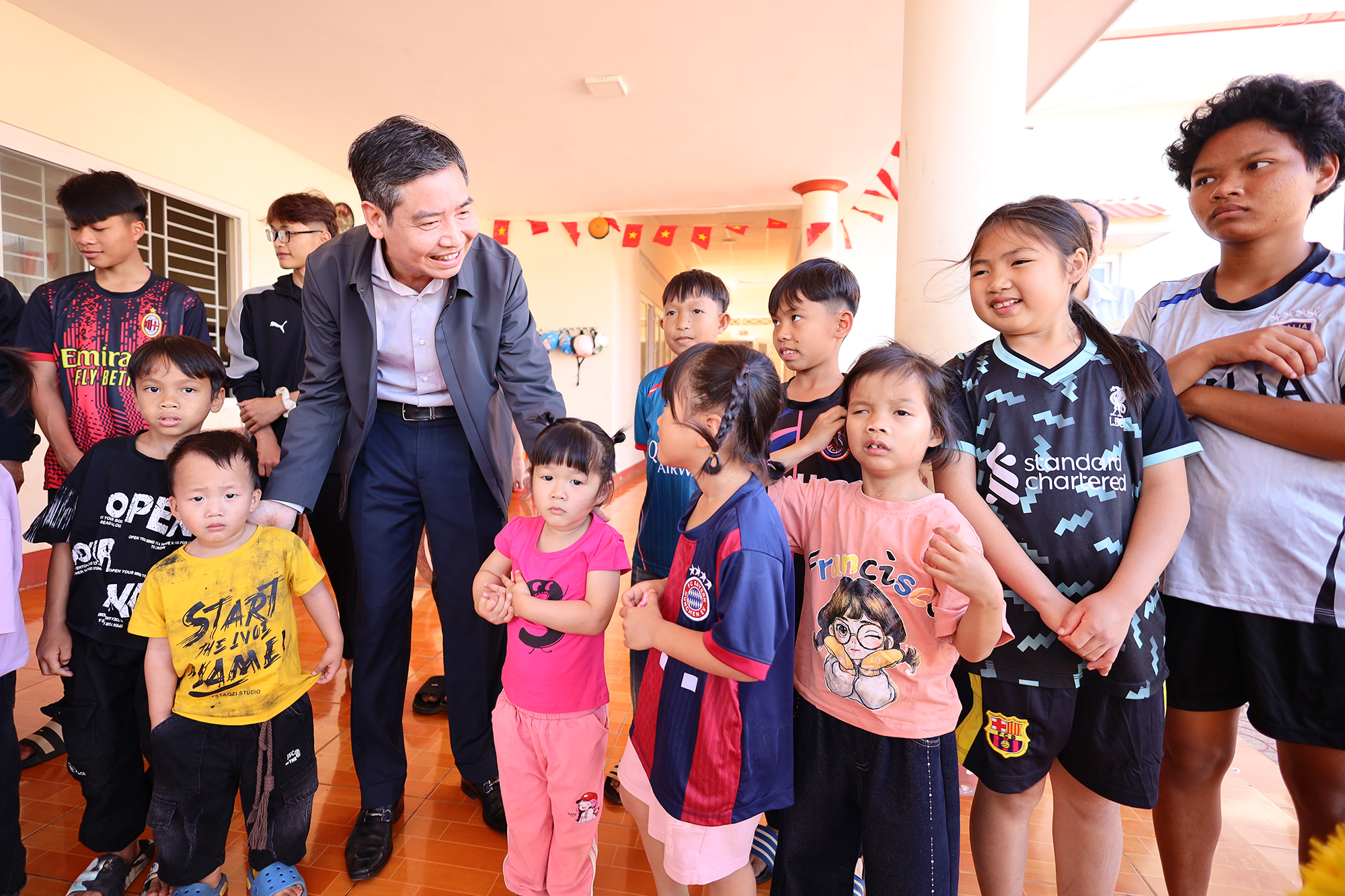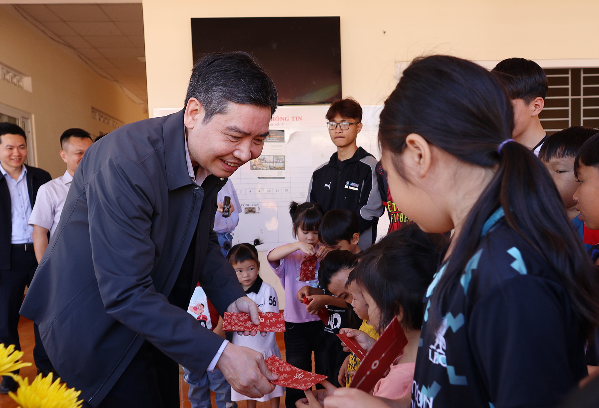 Chủ tịch UBND tỉnh Tạ Anh Tuấn thăm hỏi, lì xì các em thiếu nhi tại Trung tâm Bảo trợ xã hội và Trẻ em tỉnh.