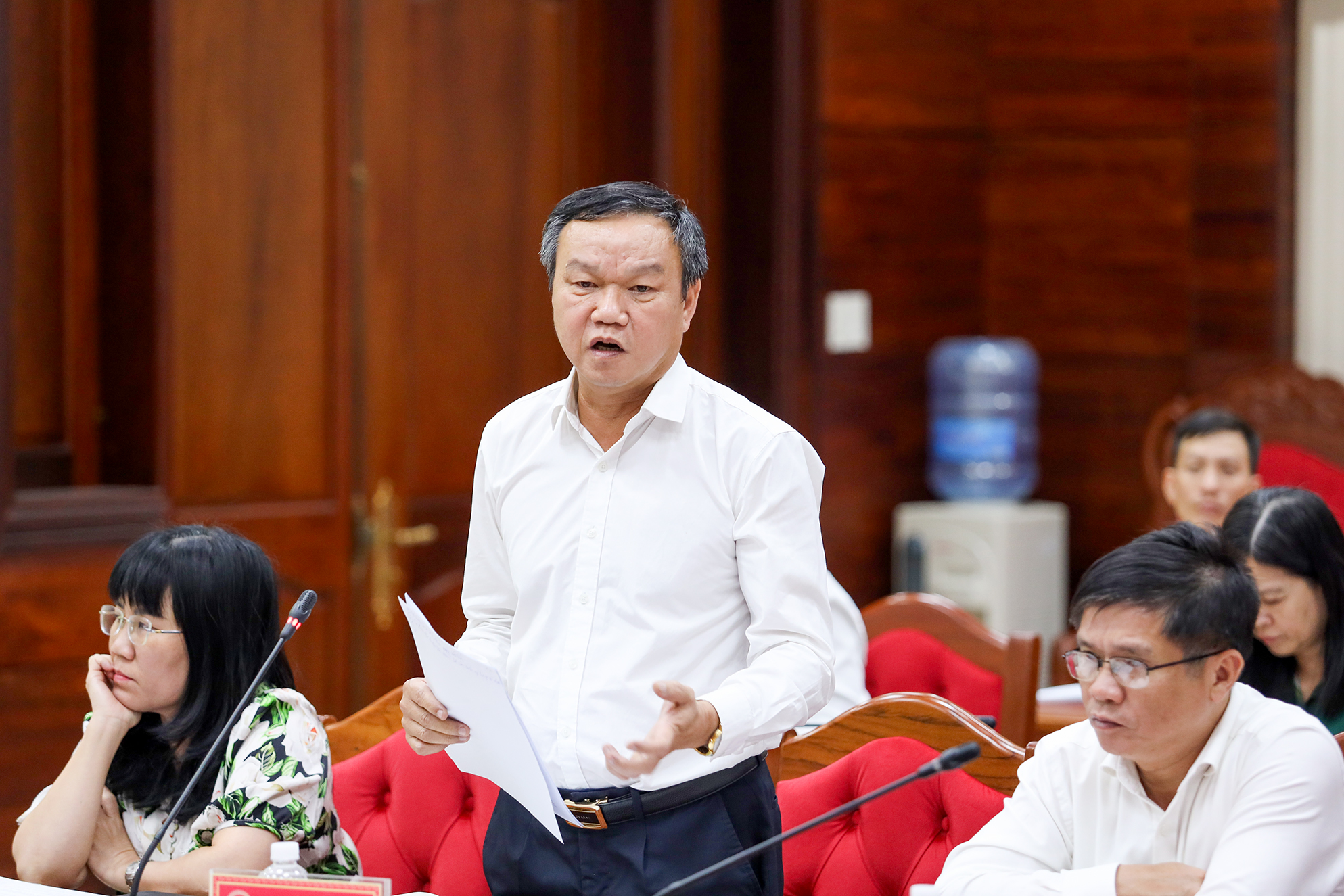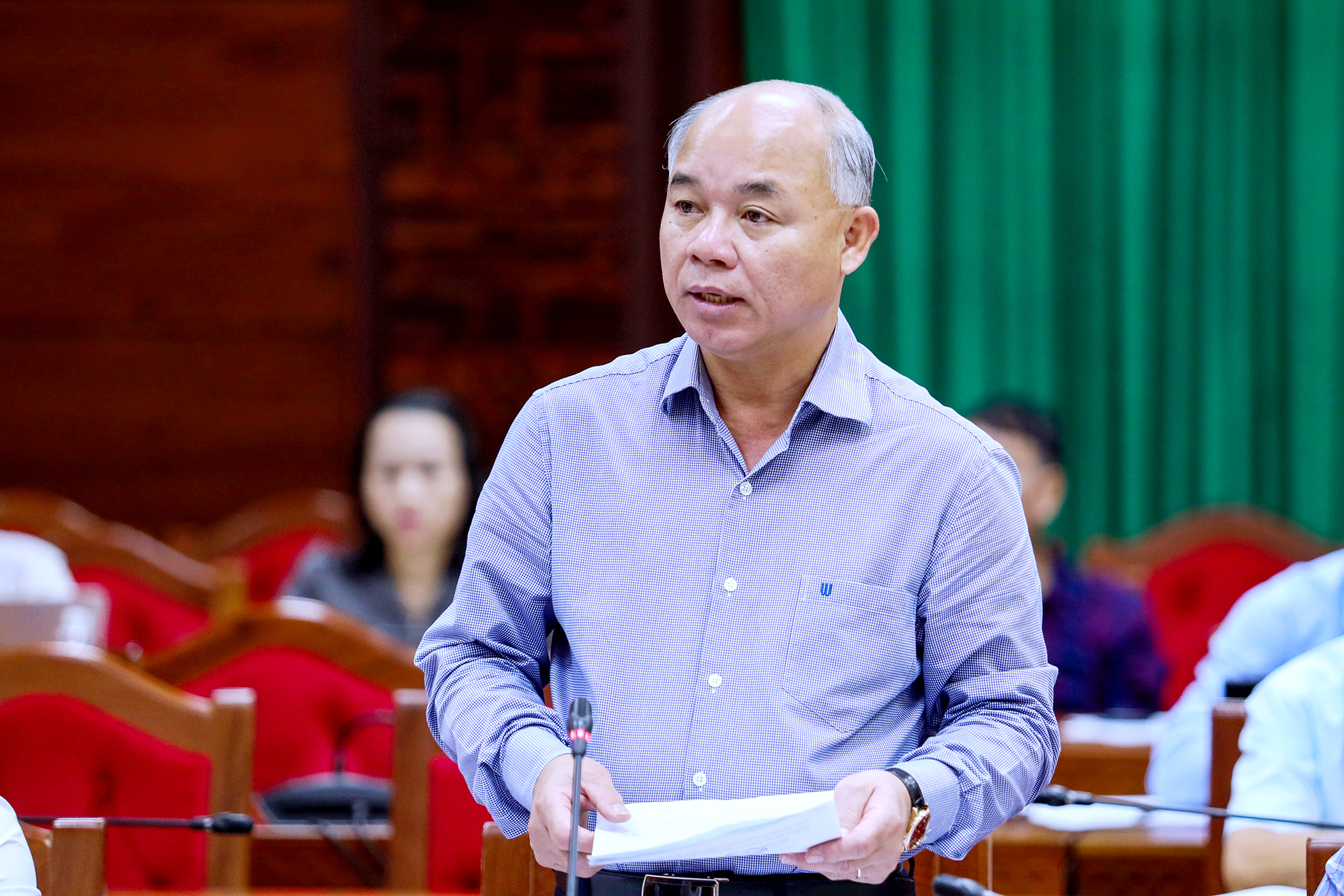 Đồng chí Nguyễn Thiên Văn - Phó Chủ tịch UBND tỉnh phát biểu tại cuộc họp.