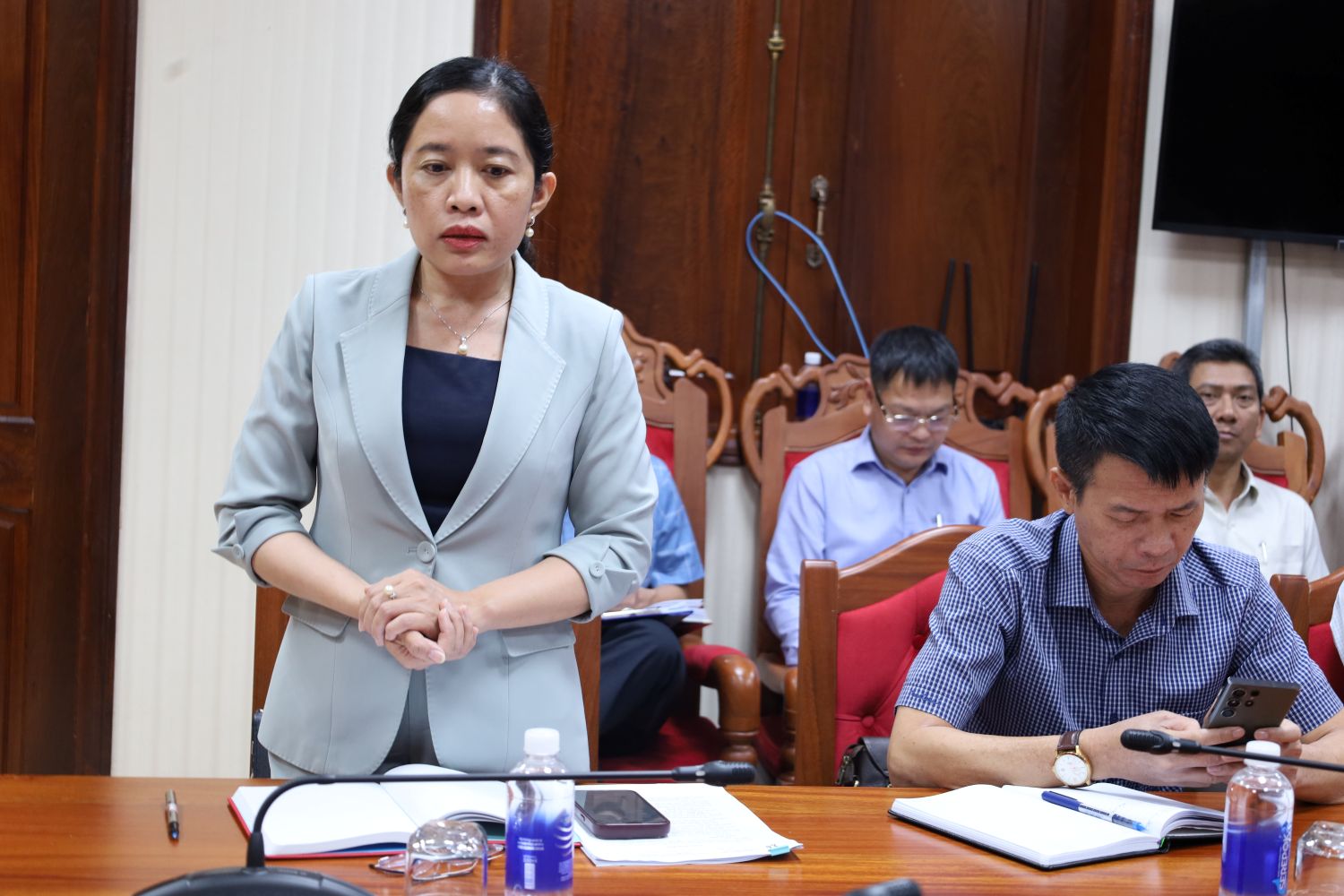 Bà Lê Thị Thanh Xuân – Giám đốc Sở Giáo dục và Đào tạo phát biểu tại cuộc họp
