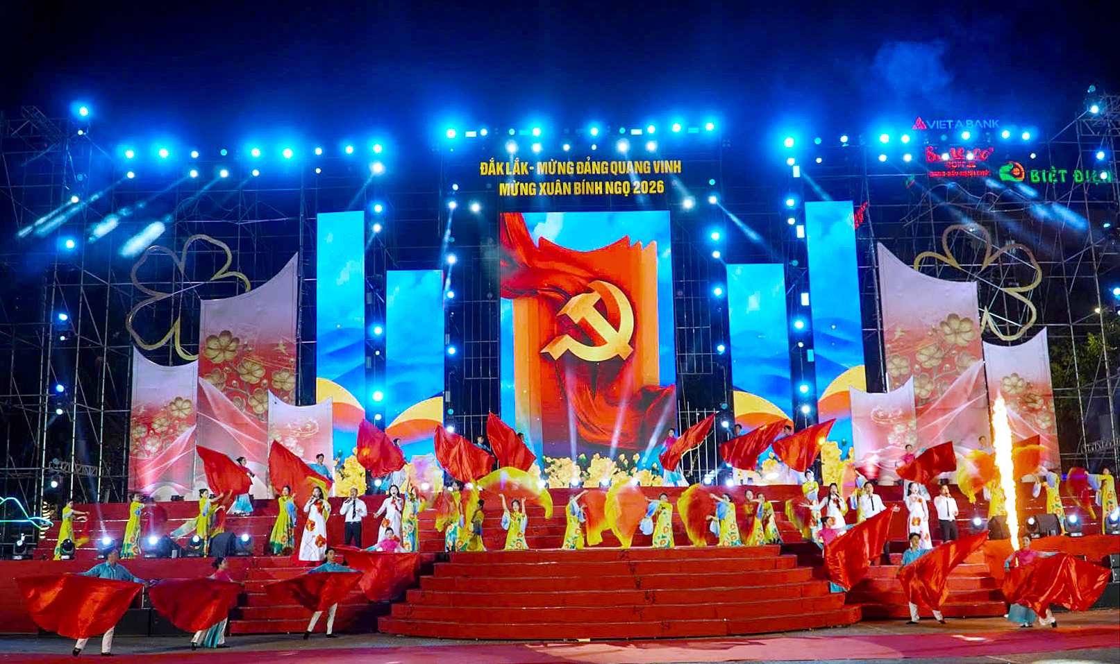 Chương trình cũng gửi đến thông điệp tươi đẹp về Xuân Bính Ngọ 2026 với khát vọng bứt phá, tinh thần tiên phong và niềm tin vào những chặng đường rộng mở phía trước. Đắk Lắk tự tin cùng cả nước vững tin tiến bước, hướng tới thành công bền vững, phồn vinh và thịnh đạt trong kỷ nguyên phát triển mới của toàn dân tộc dưới ánh sáng Nghị quyết Đại hội XIV của Đảng.