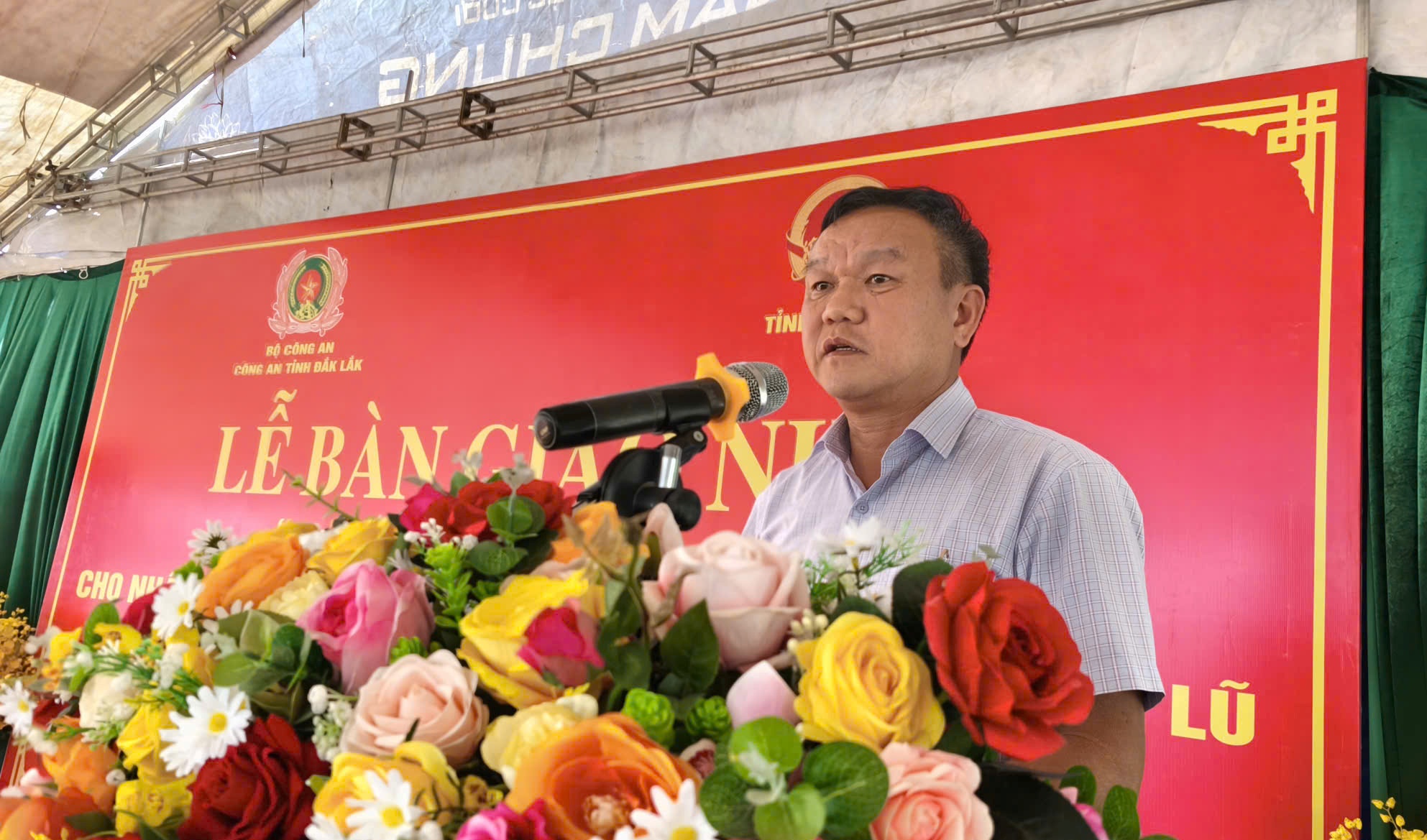 Phát biểu tại buổi lễ, Phó Chủ tịch UBND tỉnh Đào Mỹ khẳng định, việc hoàn thành và bàn giao nhà ở cho người dân bị thiệt hại nặng nề do thiên tai không chỉ có ý nghĩa thiết thực về mặt vật chất, mà còn là sự động viên tinh thần to lớn, giúp các gia đình sớm ổn định cuộc sống, yên tâm lao động, sản xuất. Phó Chủ tịch UBND tỉnh nhấn mạnh, những mái ấm mới khang trang, kiên cố được bàn giao hôm nay là kết quả của sự quan tâm, chỉ đạo sát sao của Bộ Công an, Tỉnh ủy, UBND tỉnh; sự vào cuộc quyết liệt, trách nhiệm của lực lượng Công an tỉnh cùng sự phối hợp chặt chẽ của các cấp, các ngành và chính quyền địa phương. Qua đó thể hiện rõ tinh thần trách nhiệm, nghĩa tình, quyết tâm “không để ai bị bỏ lại phía sau” trong công tác chăm lo an sinh xã hội cho nhân dân vùng bị ảnh hưởng bởi thiên tai.