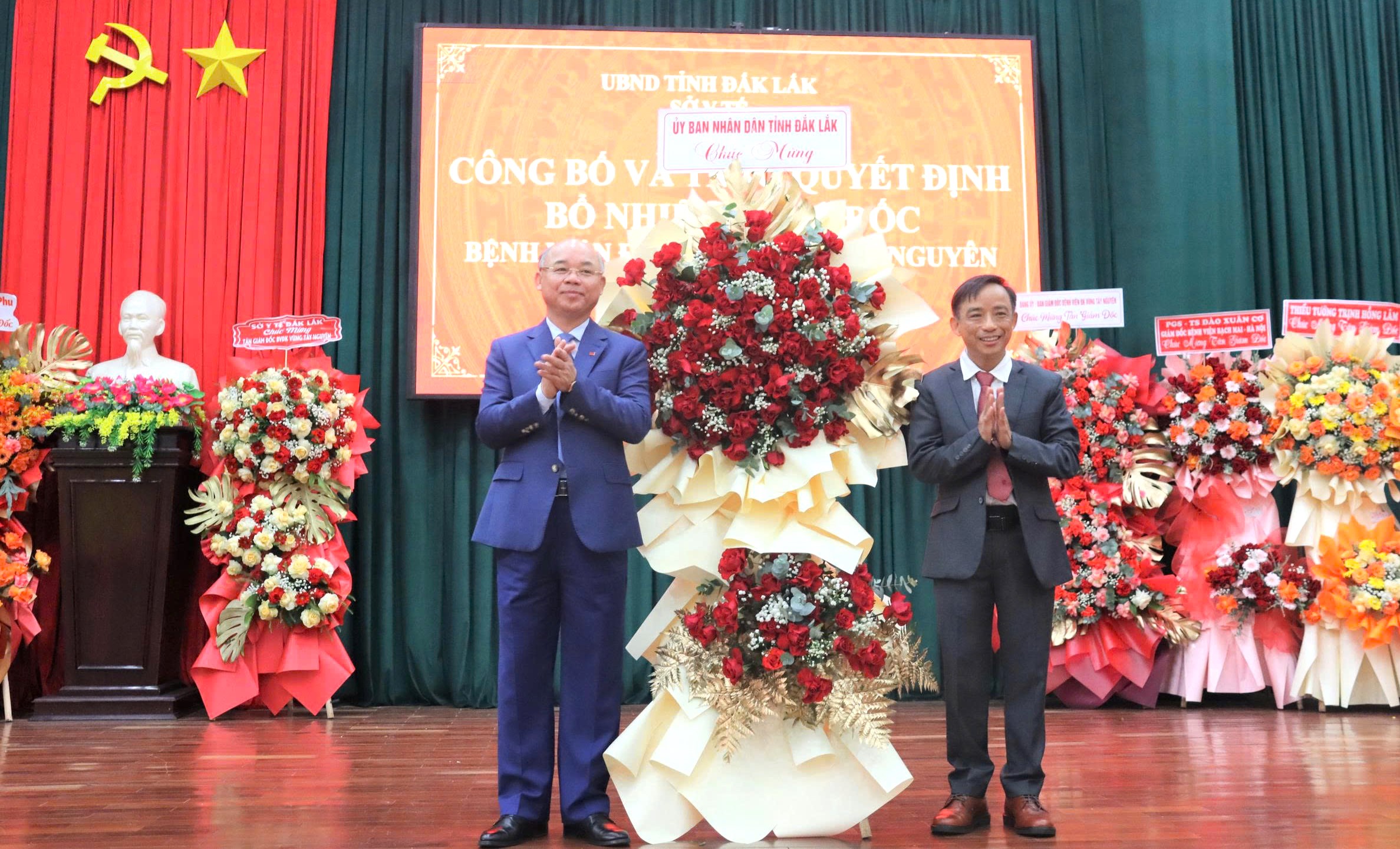 Lãnh đạo tỉnh và sở, ngành tặng hoa chúc mừng tân Giám đốc Bệnh viện Đa khoa vùng Tây Nguyên Trịnh Hồng Nhựt.