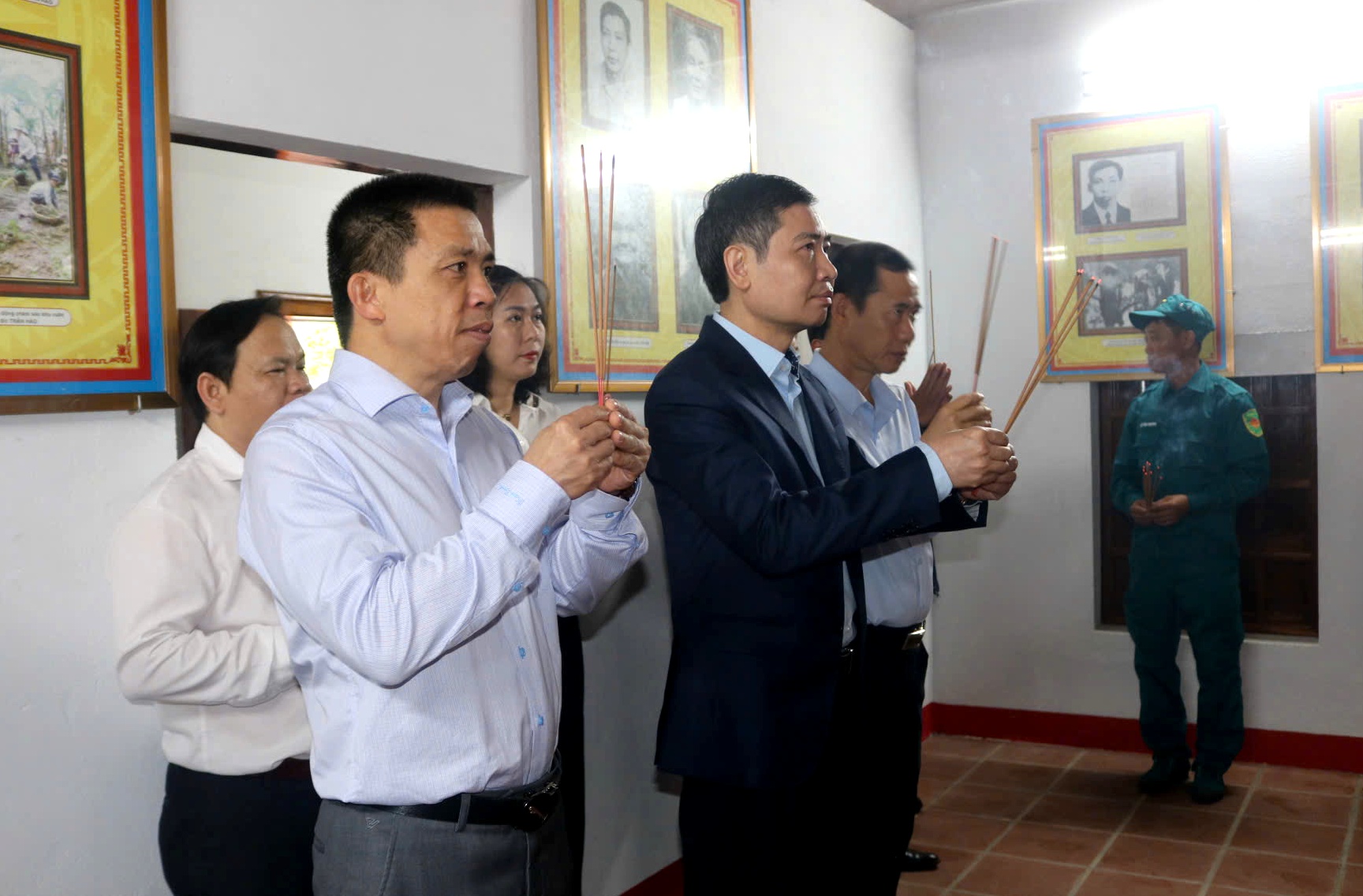 Các đồng chí lãnh đạo và các đại biểu dâng hương tưởng niệm liệt sỹ Trần Hào.