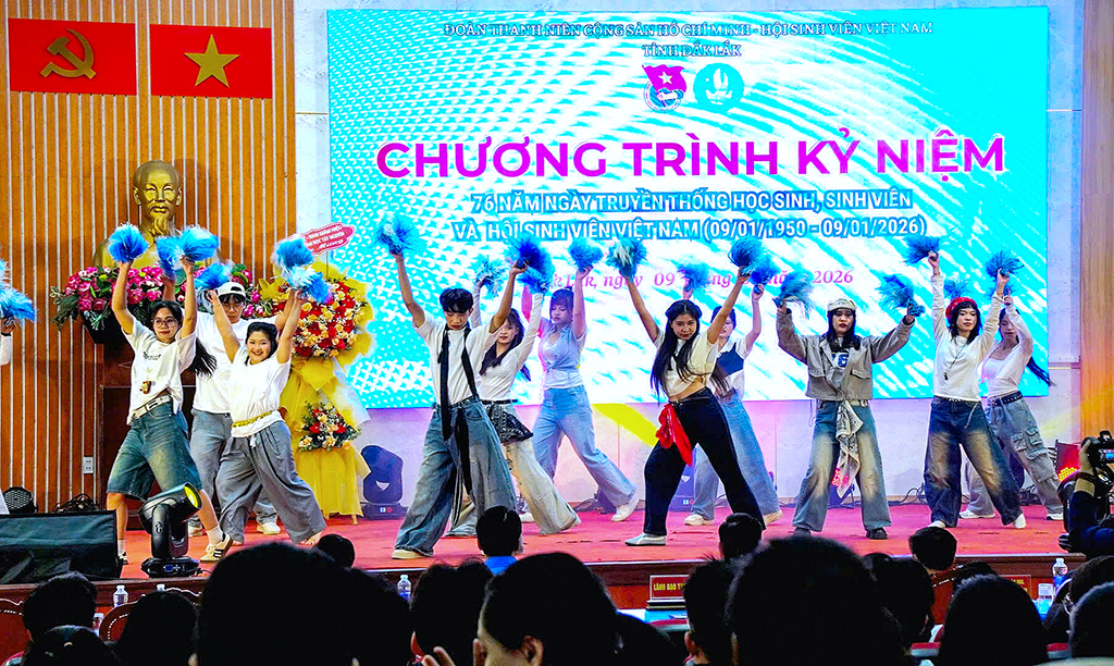 Ngày 09/01, tại Trường Đại học Tây Nguyên, Ban Thường vụ Tỉnh Đoàn, Hội Sinh viên Việt Nam tỉnh Đắk Lắk tổ chức Chương trình kỷ niệm 76 năm Ngày truyền thống Học sinh, Sinh viên và Hội Sinh viên Việt Nam (09/01/1950 - 09/01/2026). Gần 1.000 đoàn viên, hội viên và học sinh, sinh viên trên địa bàn tỉnh tham dự.