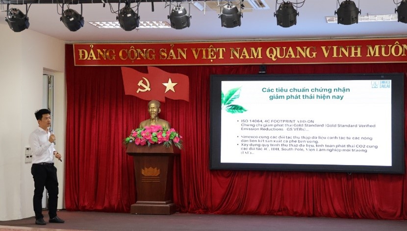 Ông Nguyễn Đại Dương - Công ty Simexco trình bày tham luận: “Thực trạng: Yêu cầu của thị trường và các chính sách liên quan đến giảm phát thải trong ngành cà phê - Tiếng nói từ doanh nghiệp” -Ảnh : Ban Tổ chức