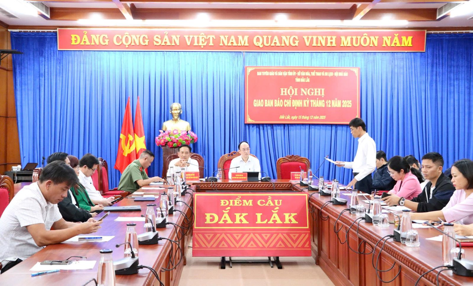 Chiều 15/12, Ban Tuyên giáo và Dân vận Tỉnh ủy Đắk Lắk phối hợp với Sở Văn hóa, Thể thao và Du lịch Đắk Lắk và Hội Nhà báo tỉnh Đắk Lắk tổ chức Hội nghị giao ban báo chí định kỳ tháng 12/2025.