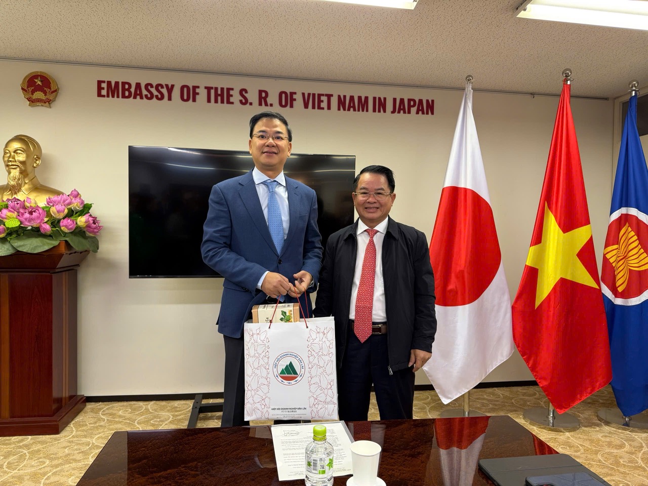 Phát biểu tại buổi làm việc, ông Huỳnh Văn Dũng – Chủ tịch Hiệp hội Doanh nghiệp tỉnh Đắk Lắk cảm ơn Đại sứ quán Việt Nam tại Nhật Bản đã quan tâm, tiếp đón và hỗ trợ đoàn công tác; đồng thời nhấn mạnh ý nghĩa của chuyến đi trong bối cảnh tỉnh Đắk Lắk đẩy mạnh hội nhập quốc tế và mở rộng thị trường xuất khẩu.