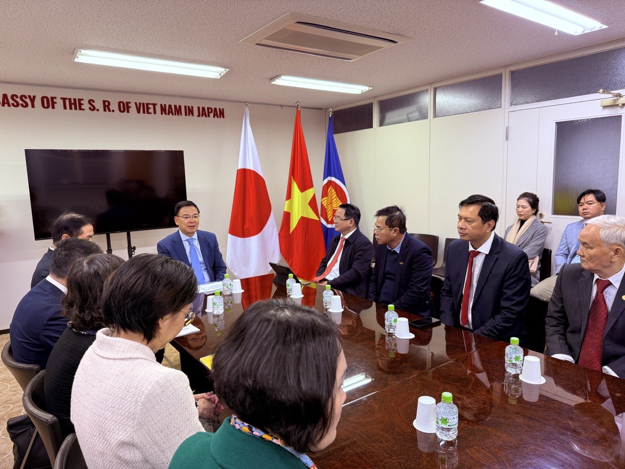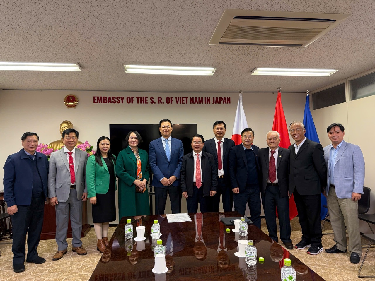 Tiếp và làm việc với đoàn có Ngài Phạm Quang Hiệu – Đại sứ đặc mệnh toàn quyền Việt Nam tại Nhật Bản cùng bà Võ Thanh Hương – Bí thư thứ nhất, phụ trách Bộ phận Thương mại và ông Nguyễn Hồng Sơn – Chủ tịch Liên hiệp hội Việt Nam tại Nhật Bản; cán bộ Đại sứ quán Việt Nam tại Nhật Bản.