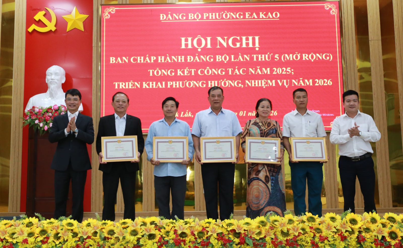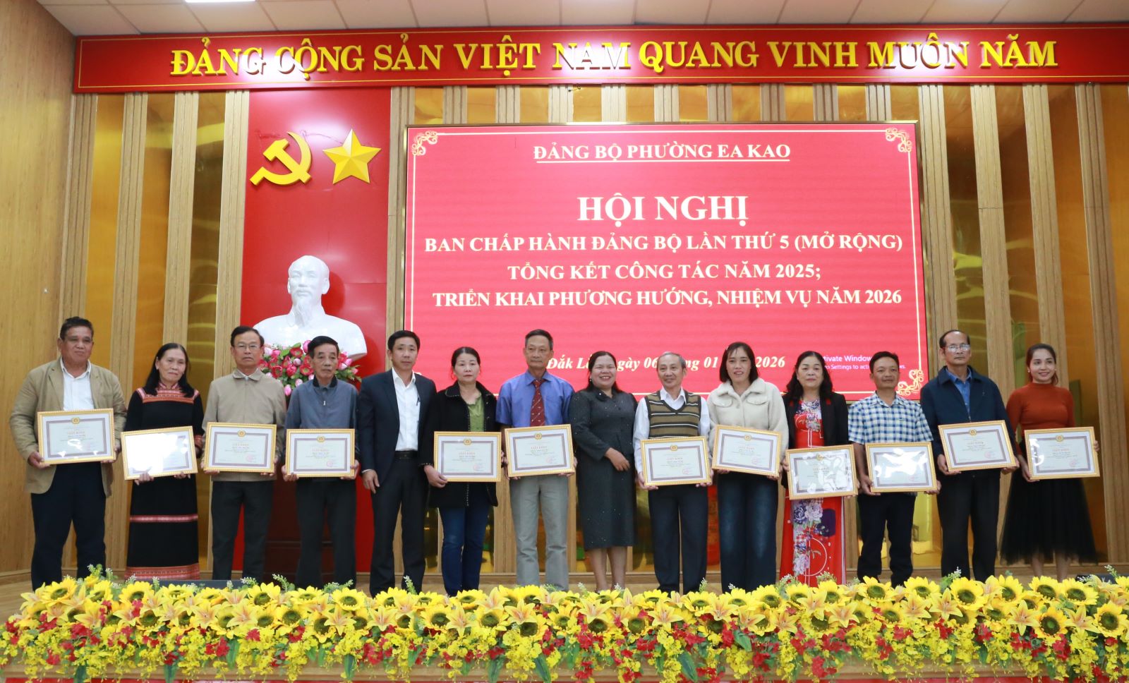 Nhân dịp này, Ban Chấp hành Đảng bộ phường Ea Kao đã tặng Giấy khen cho 11 tập thể có thành tích hoàn thành xuất sắc nhiệm vụ năm 2025; 12 cá nhân có thành tích hoàn thành xuất sắc nhiệm vụ giai đoạn 2021- 2025; khen thưởng 5 tập thể tiêu biểu trong chuyên đề phát triển đảng viên mới năm 2025.