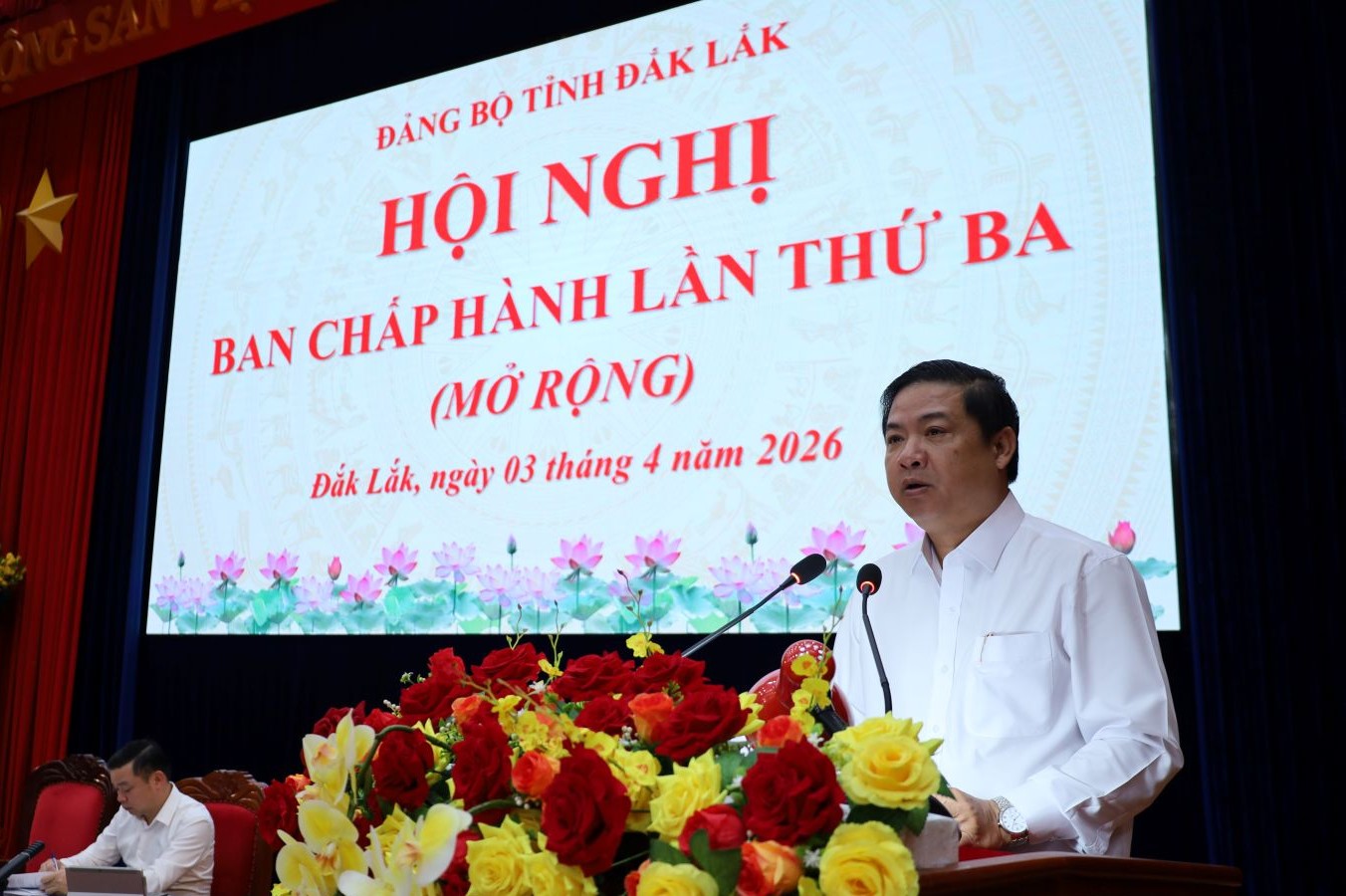 Sáng 3/4, Ban Thường vụ Tỉnh ủy Đắk Lắk đã tổ chức Hội nghị Ban Chấp hành Đảng bộ tỉnh lần thứ Ba (mở rộng) nhằm đánh giá kết quả thực hiện nhiệm vụ quý I và triển khai các giải pháp trọng tâm cho quý II/2026 và một số nội dung quan trọng khác.