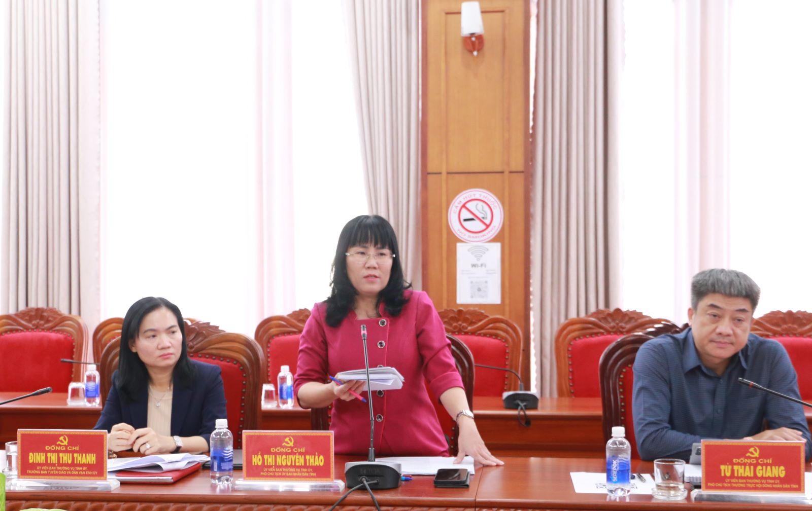 Đồng chí Hồ Thị Nguyên Thảo - Ủy viên Ban Thường vụ Tỉnh ủy, Phó Chủ tịch Thường trực UBND tỉnh phát biểu thảo luận tại hội nghị.
